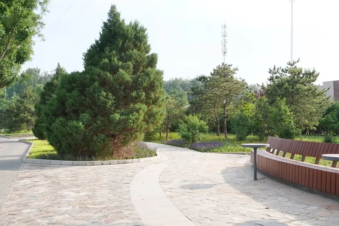 漫步在新铺设的步道上,目之所及皆是绿意,微风拂过,花草轻摇,行人沉浸其中,享受着惬意舒适的休憩时光。