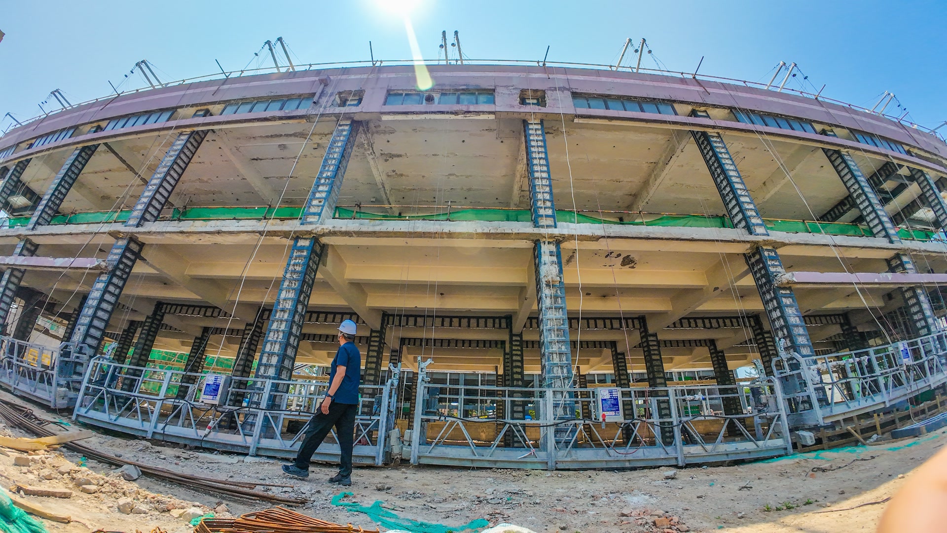 在这片园区,地上主体结构包含12栋新建建筑及6栋改建建筑,在改建建筑区域,老厂房的多个混凝土立柱予以保留,讲述着这里的前世今生。这处承载城市工业记忆的建筑群前身为始建于1958年的北京市科实五金有限责任公司,曾是北京五金建材行业的重要生产基地。