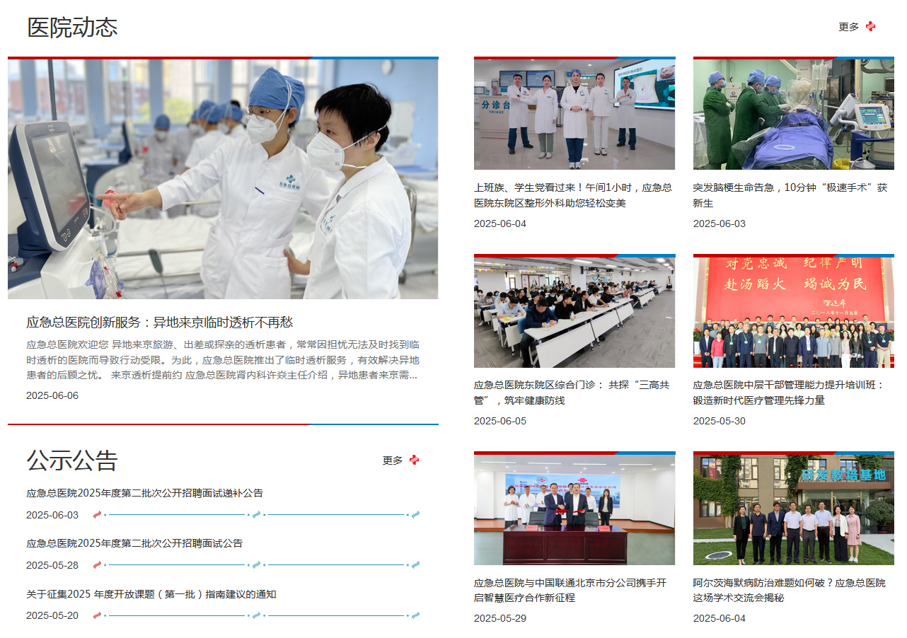 应急总医院新版官网正式上线啦!这次升级,我们不仅优化了功能,还融入了更多贴心设计,让服务更便捷,让医院文化更有温度。快来一起看看都有哪些新变化吧!