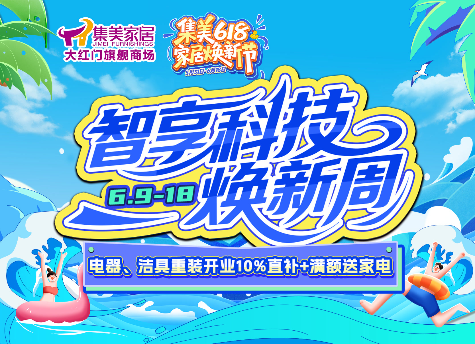 5月31日至6月18日,集美“618家居焕新节”主题活动启动。据了解,自6月9日起,集美家居“智享科技焕新周”如期而至,活动将以更具吸引力的优惠与更前沿的产品,持续激发消费者的购物热情。
