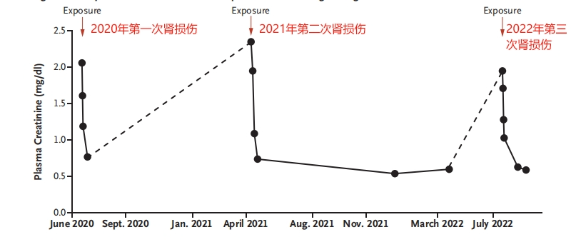 事实上,除了肾病患者,健康的人也可能在直发后出现肾损伤。2024年,《新英格兰医学杂志》上刊发了一个病例研究:一位26岁的身体健康女孩,在2020年6月、2021年4月和2022年7月,两年时间3次出现因呕吐、腹泻、发热和背痛等就医,都被医生诊断为急性肾损伤。