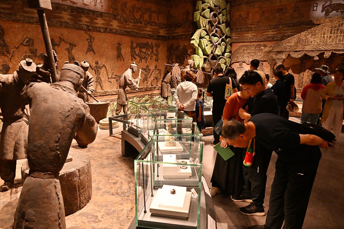 “良工巧匠”,以制陶、炼铁、榨油等工艺流程为主题内容,展示汉代路县各种工艺场景;“繁荣市井”,展示市井生活场景,设置不同类型的商铺,如酒肆、食肆、帛肆、茶坊等,还原汉代肆的布局和商业活动……漫步各展示景点,恍惚可与几千年前的场景穿越相遇。