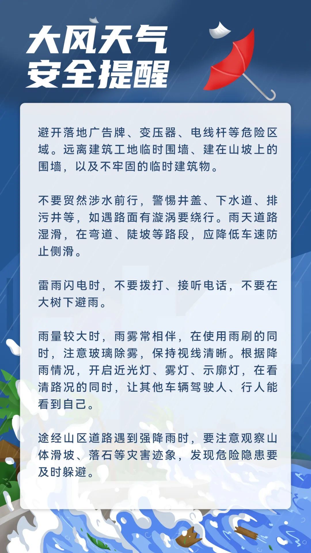 1.户外人员应当远离高地和树木,停止高空、水上作业。