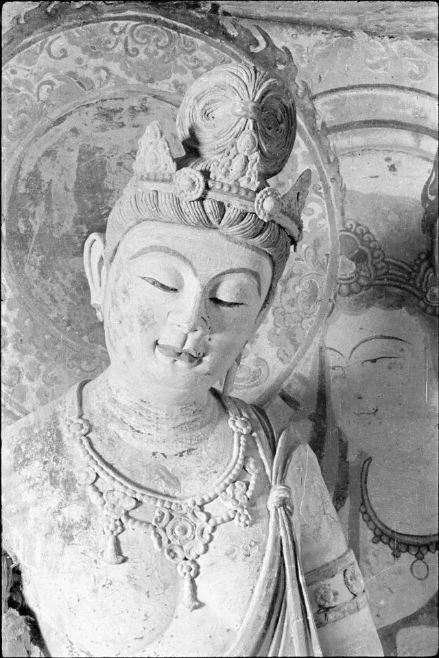 这些图像不仅因大画幅接片技术和精妙的构图成为纪录摄影的典范,更是研究敦煌艺术原真性最重要的“视觉证据”之一。相关研究者介绍,它们历经战火迁徙,于1968年由美术史家方闻教授重新“发现”,而后收入普林斯顿大学“东亚艺术图像档案”中。此后,“罗氏档案”被公认为是20世纪上半叶最为系统、全面和权威的敦煌旧照影像资料,具有非凡的历史和艺术价值。