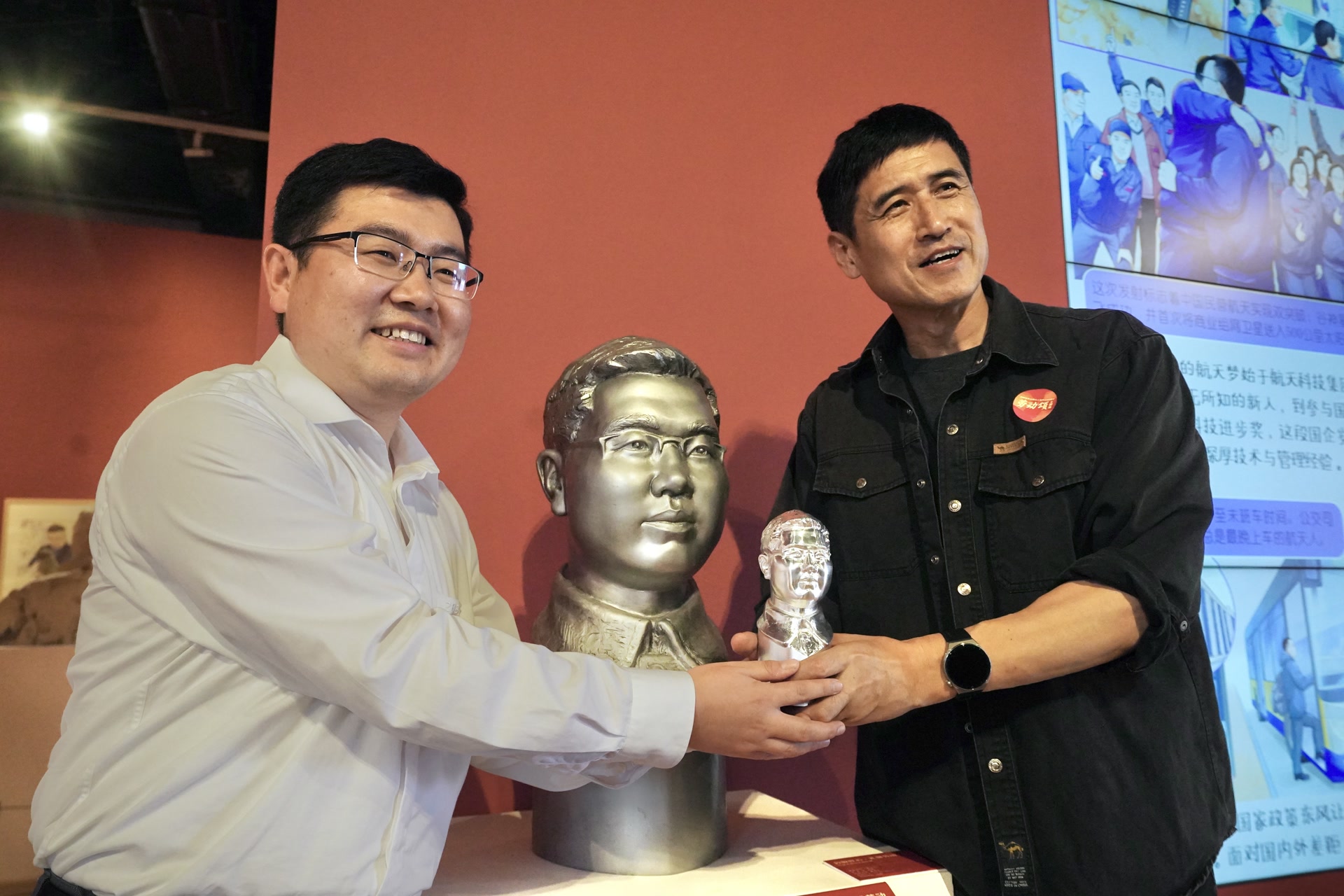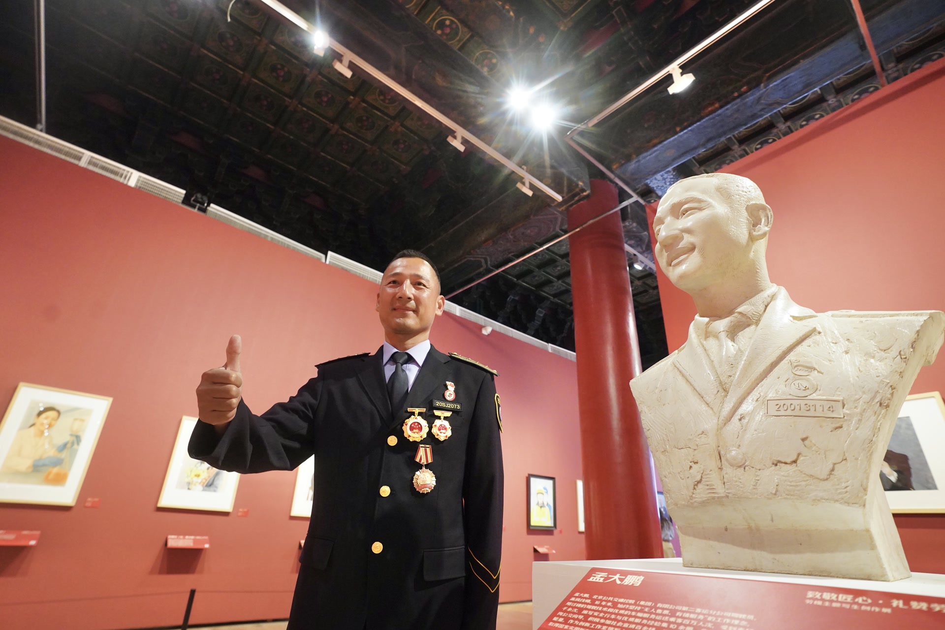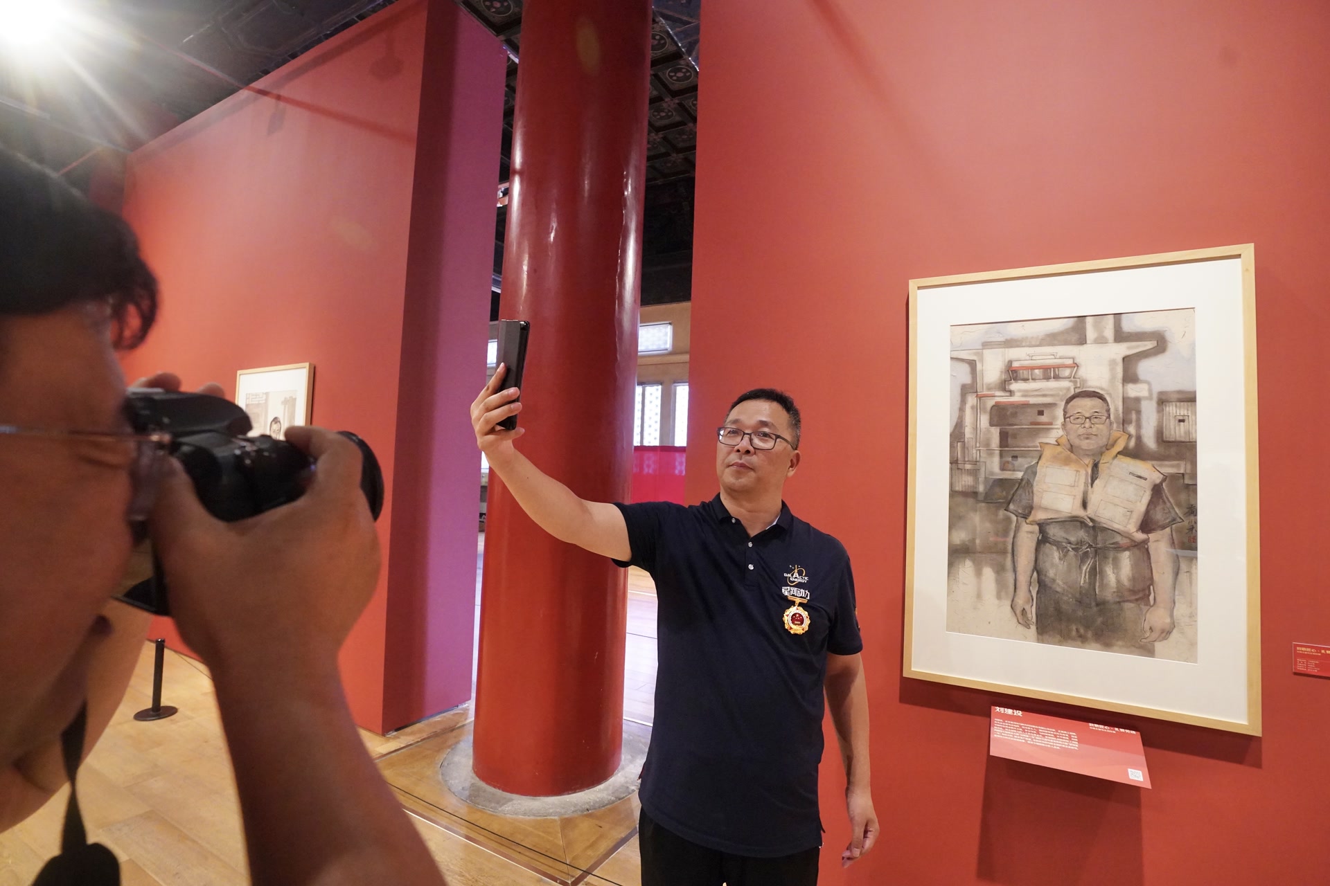 参观环节充满了温情与感动。来自首都各行各业的劳模、工匠、艺术家和职工代表们,漫步在这座承载着职工文化记忆的殿堂里。有的劳模工匠本人就是此次艺术创作的对象,当他们看到以自己形象为创作主题的艺术作品时,眼中闪烁着激动与自豪的光芒,带着庄重而又喜悦的神情与艺术作品合影留念。那一张张合影,不仅是他们与艺术作品的留念,更是他们与自己奋斗岁月的深情相拥。