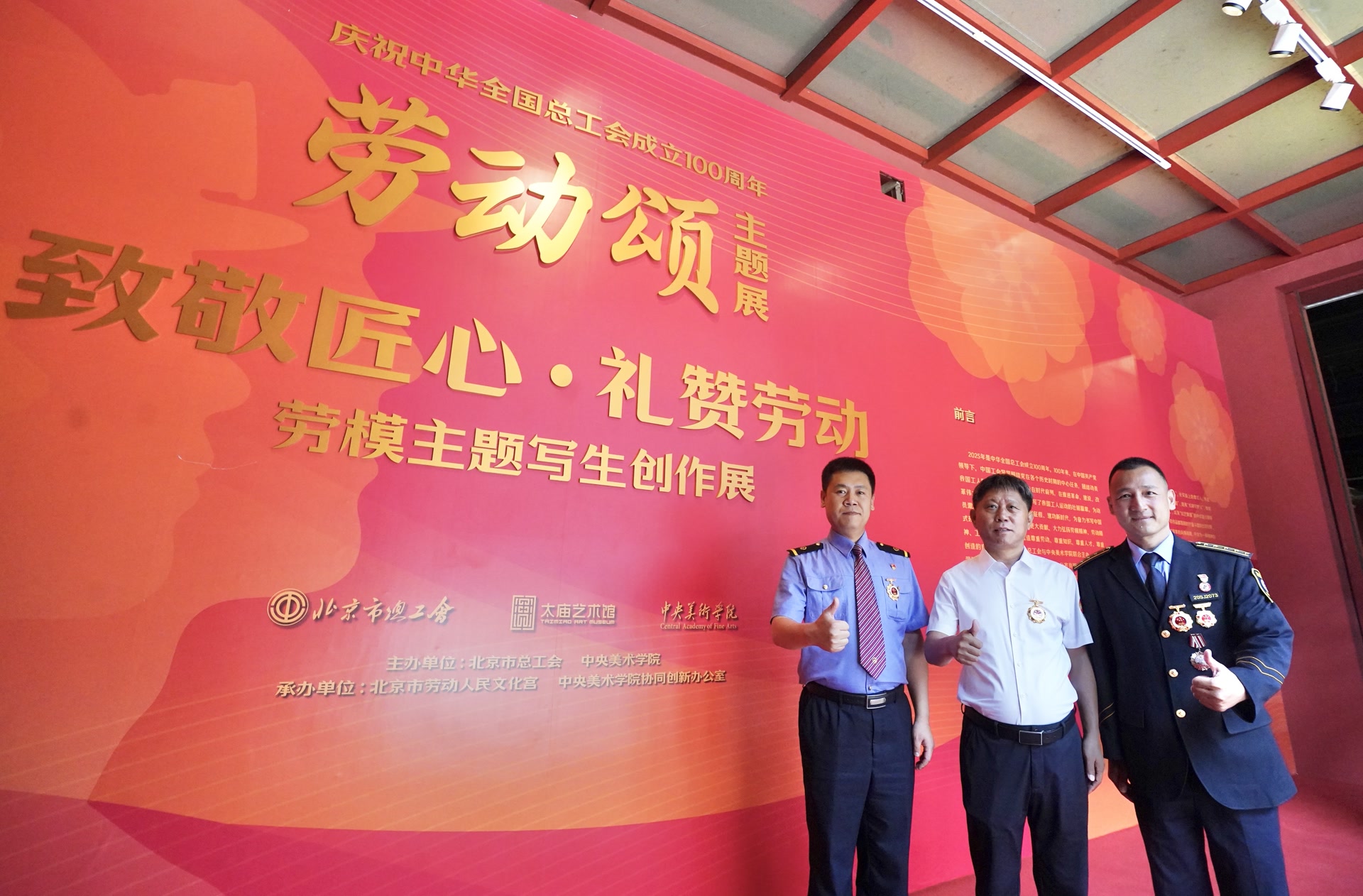 本次展览由北京市总工会、中央美术学院主办,北京市劳动人民文化宫(太庙艺术馆)、北京职工书画协会承办,中国艺术研究院写意画院支持。展览在太庙艺术馆展出至7月,包括位于太庙寝殿的“致敬匠心 礼赞劳动——劳模主题写生创作展” ,以及位于太庙享殿西配殿的“繁花绘韵 岁月华章——主题创作展”和东配殿的“匠心独运 京艺华彩——北京工匠工艺美术作品展”。