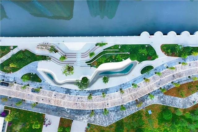 在生态景观与休闲功能上,广场外侧通过高密度种植乔木形成葱郁的林荫带。中部以疏林草地为主,保持视野的通透与开阔。西侧邻江区域的下沉广场,设置了亲水平台、台阶看台等设施,为市民日常亲水游憩、观鸥互动、举办小型音乐会等活动提供了惬意的休闲场所。