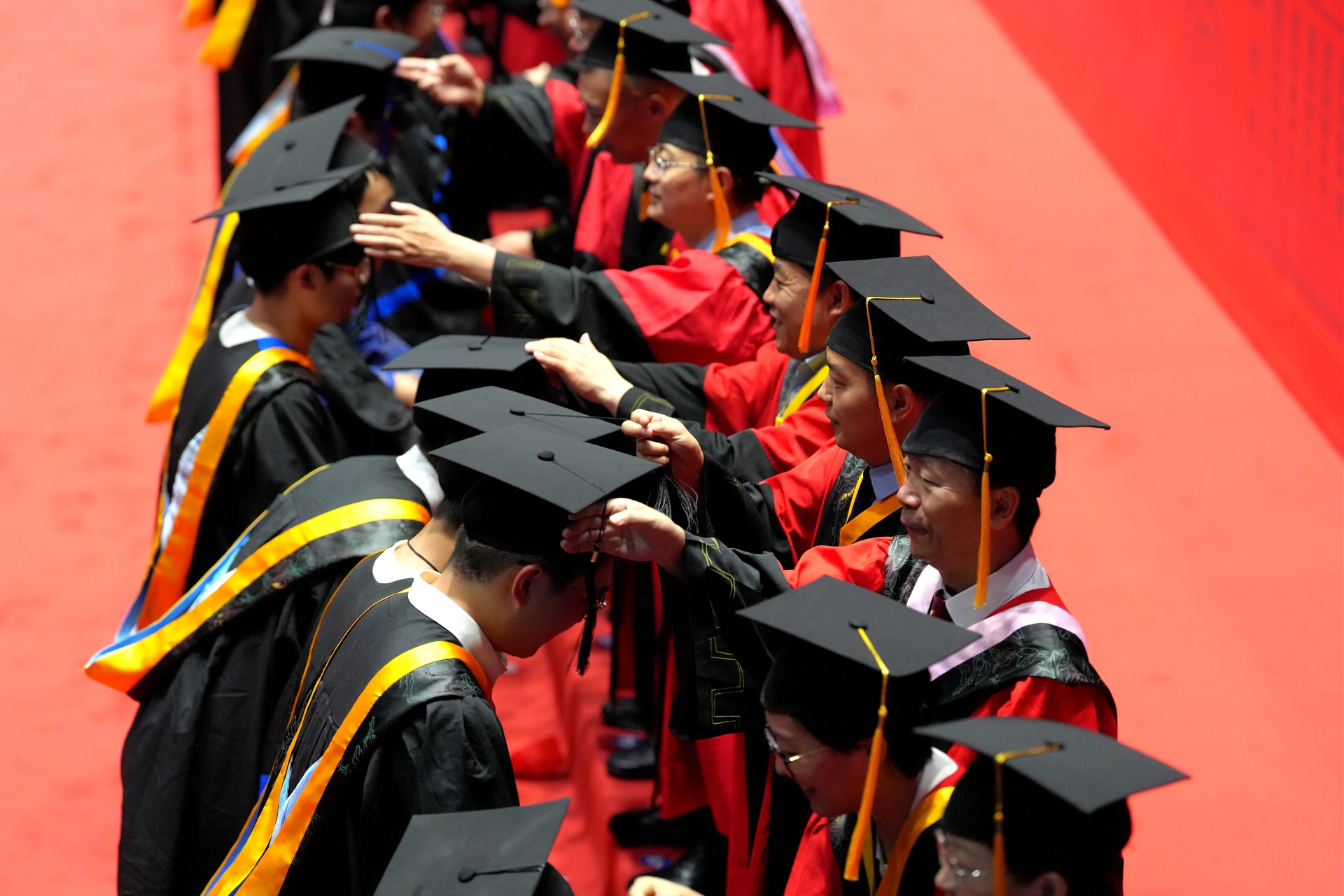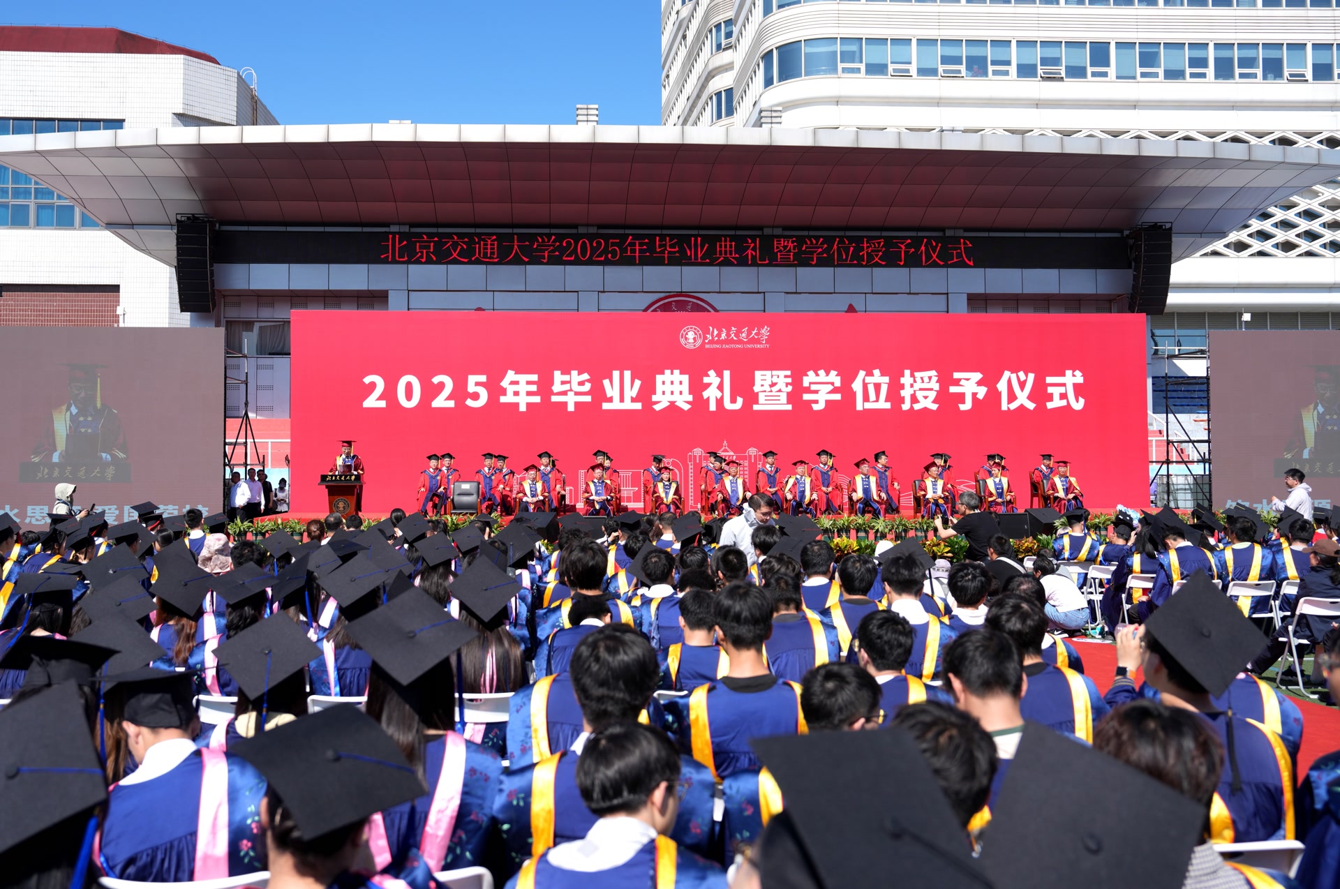 7时许,北京交大毕业典礼在歌曲联唱中拉开帷幕,毕业生代表以声传情,表达对母校、师长和同学的不舍。典礼气氛在校长余祖俊的一声声“点名”中推向高潮:“伊诺同学,你在现场吗?得知你毕业后选择加入驻非中资企业工作,希望你继续讲好中非友好故事;电信学院的史恩宇同学,你在哪里?希望你永远不要忘记6G通信研究的初心;机电学院的张海斌同学,你在吗?期待你早日完成梦想,创造出属于中国的、引领世界的机器人……”