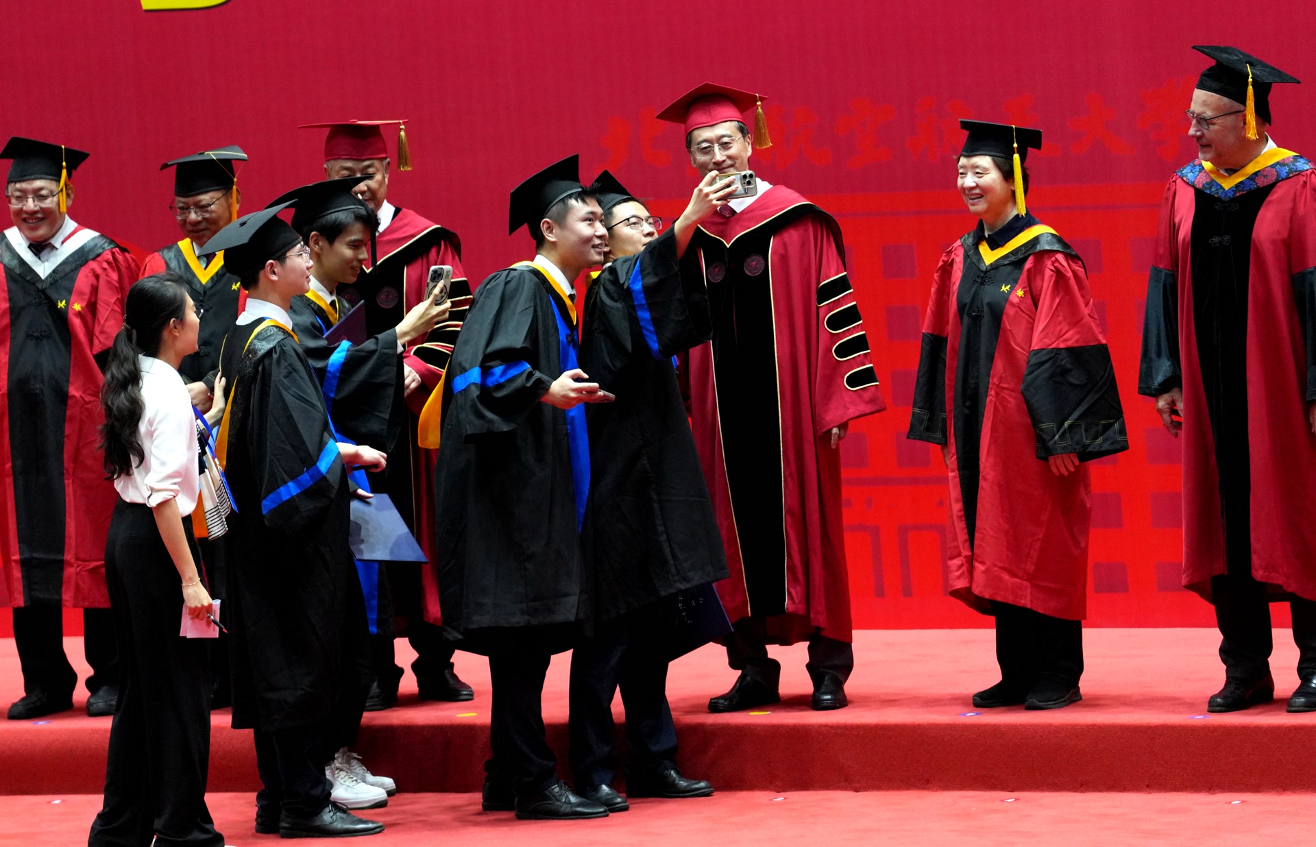 每年毕业典礼,校长寄语都是“重头戏”。今年,校长们都提到了“创新”的重要性。余祖俊说,与智能时代同频,就意味着要创新。他希望学生跳出AI给出的“标准答案”束缚,以敢为人先的精神进行颠覆性的发明创造,“相信你们一定能通过拼搏与奋斗,去迎接智能时代、引领智能时代。”