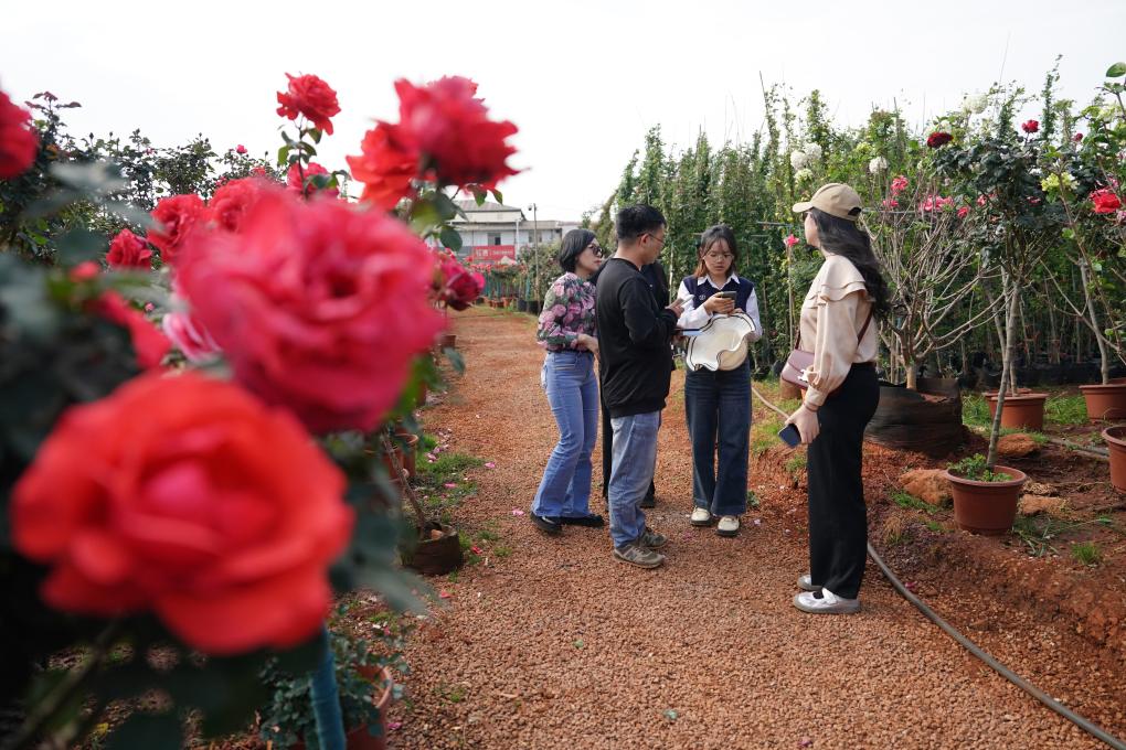 2025年4月11日,花商在云南昆明斗南一个花卉基地内讨论采购价格。新华社记者 陈欣波 摄