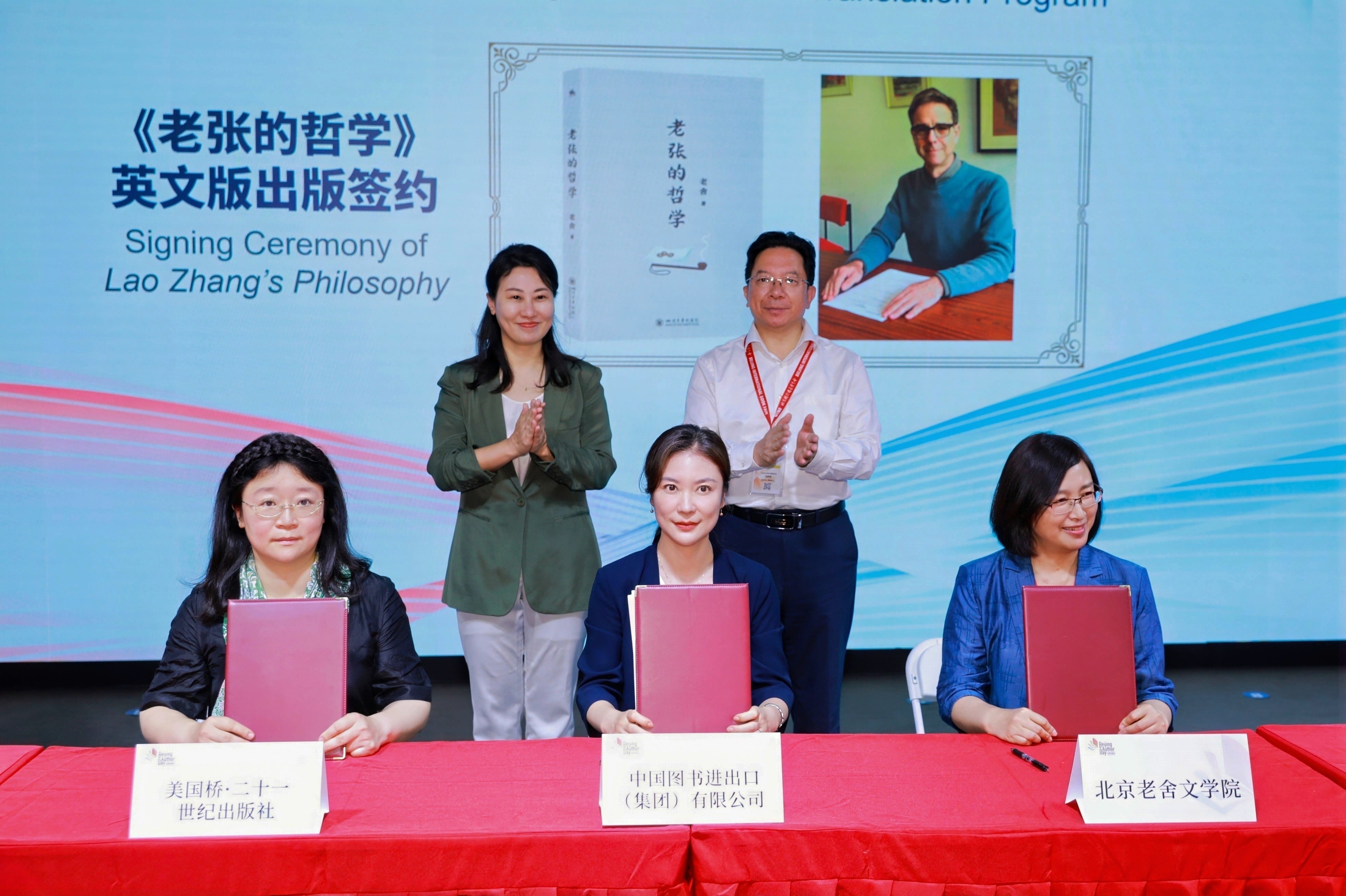 “北京作家日”开幕式的成果发布环节,由北京市文联与土耳其红猫出版社合作出版的《北京文学》土耳其文版精选集——《新时代的北京文学》(一期)亮相发布仪式。而在《老张的哲学》英文版出版签约环节。北京市文联老舍文学院、剑桥大学李约瑟研究所、中图公司、美国桥·二十一世纪出版社四家签约,携手完成出版工作。