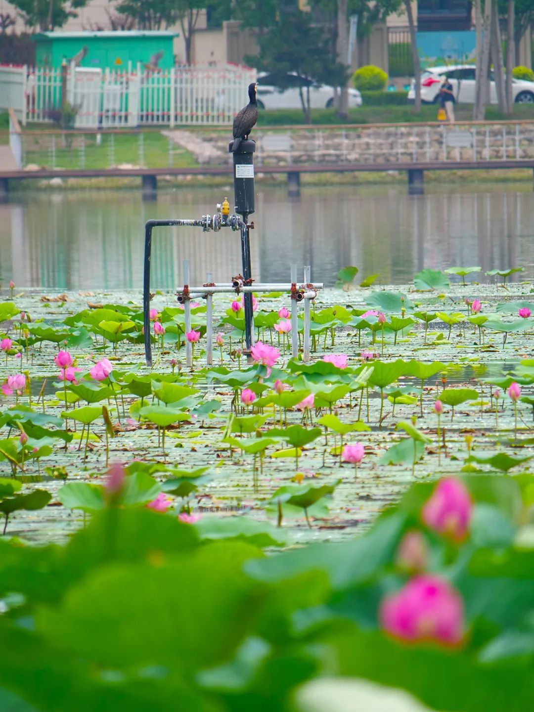 罗马湖东湖的荷花同样不甘示弱,绽放的花朵点缀在大片荷叶间,与湖水、蓝天相互映衬,构成一幅灵动的水彩画,让人沉醉其中。