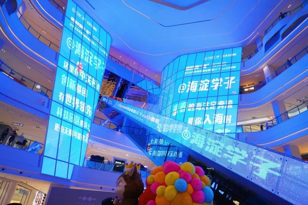 无论是中关村创业大街、东升大厦等园区,还是海淀印象城翠微店、五棵松万达、中关村领展、万柳华联、海淀大悦城、西北旺万象汇、清河万象汇、枫蓝国际等商圈的屏幕,在这一刻,都心意相通,同频闪耀。