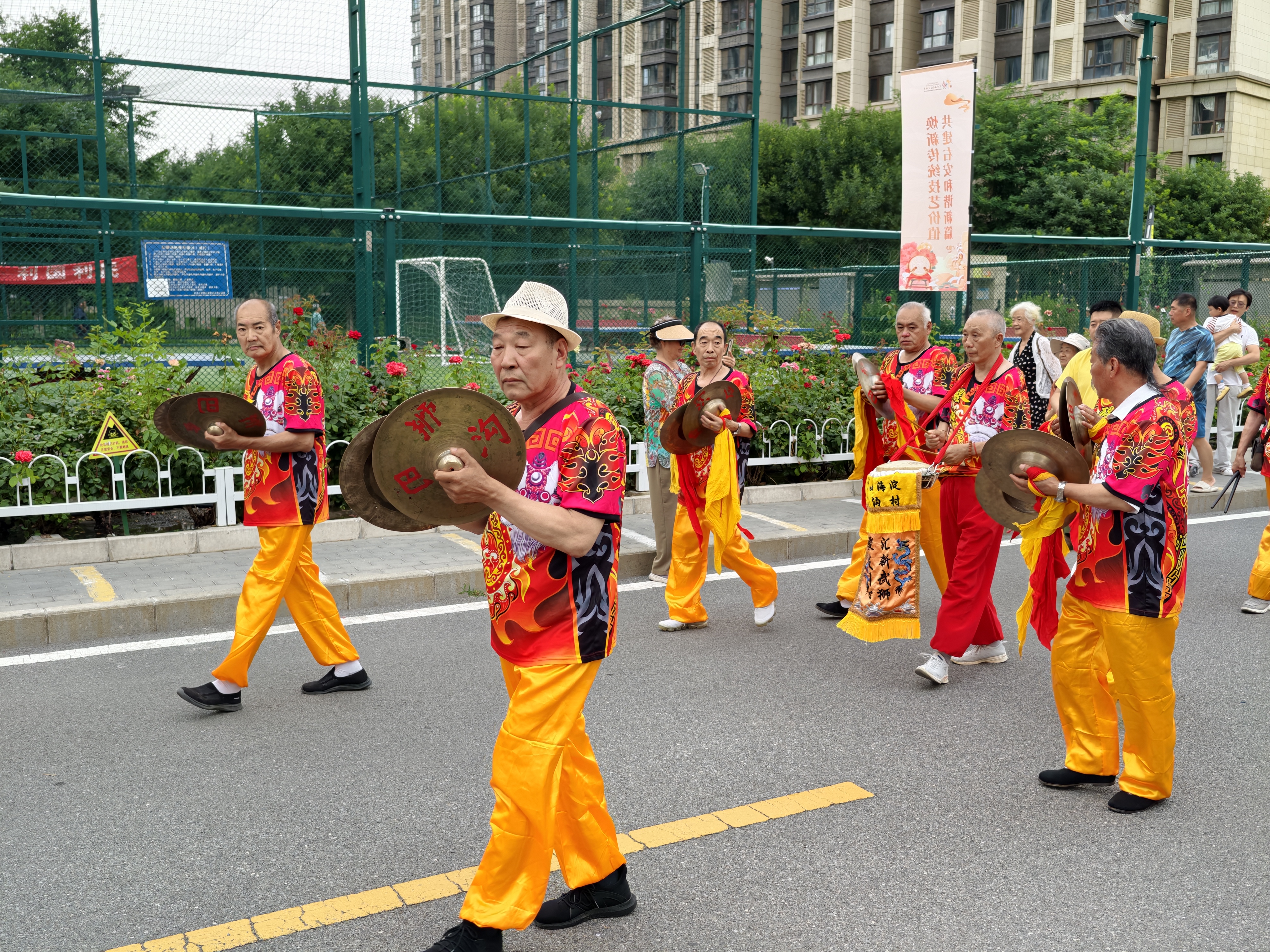 活动现场,西铁营花钹挎鼓、西铁营馨春开路会、海淀巴沟汇新舞狮等10档花会队伍依次展开踩街表演,向阳广场的舞台展演同步开启。飞叉表演者手持亮银叉腾挪翻转,叉身旋转间发出清脆声响;舞龙队伍身着彩衣,巨龙在锣鼓声中上下翻飞,穿梭于西铁营步行街,沿途居民纷纷拿出手机记录精彩瞬间。“看这中幡,耍得真熟练。”一位居民指着表演队伍感叹,中幡表演者将十余米高的幡杆抛向空中,又稳稳接住,引来阵阵惊呼。