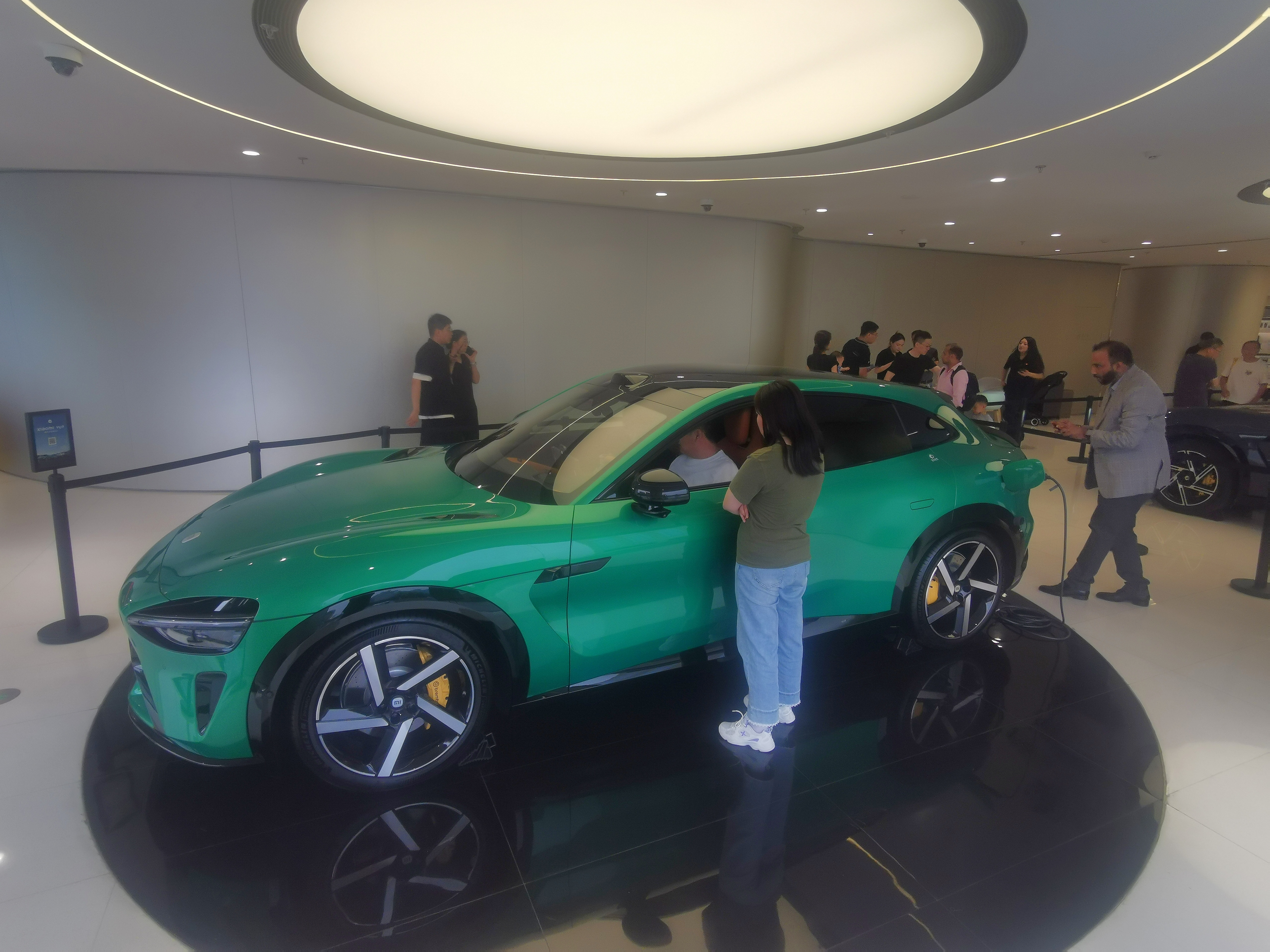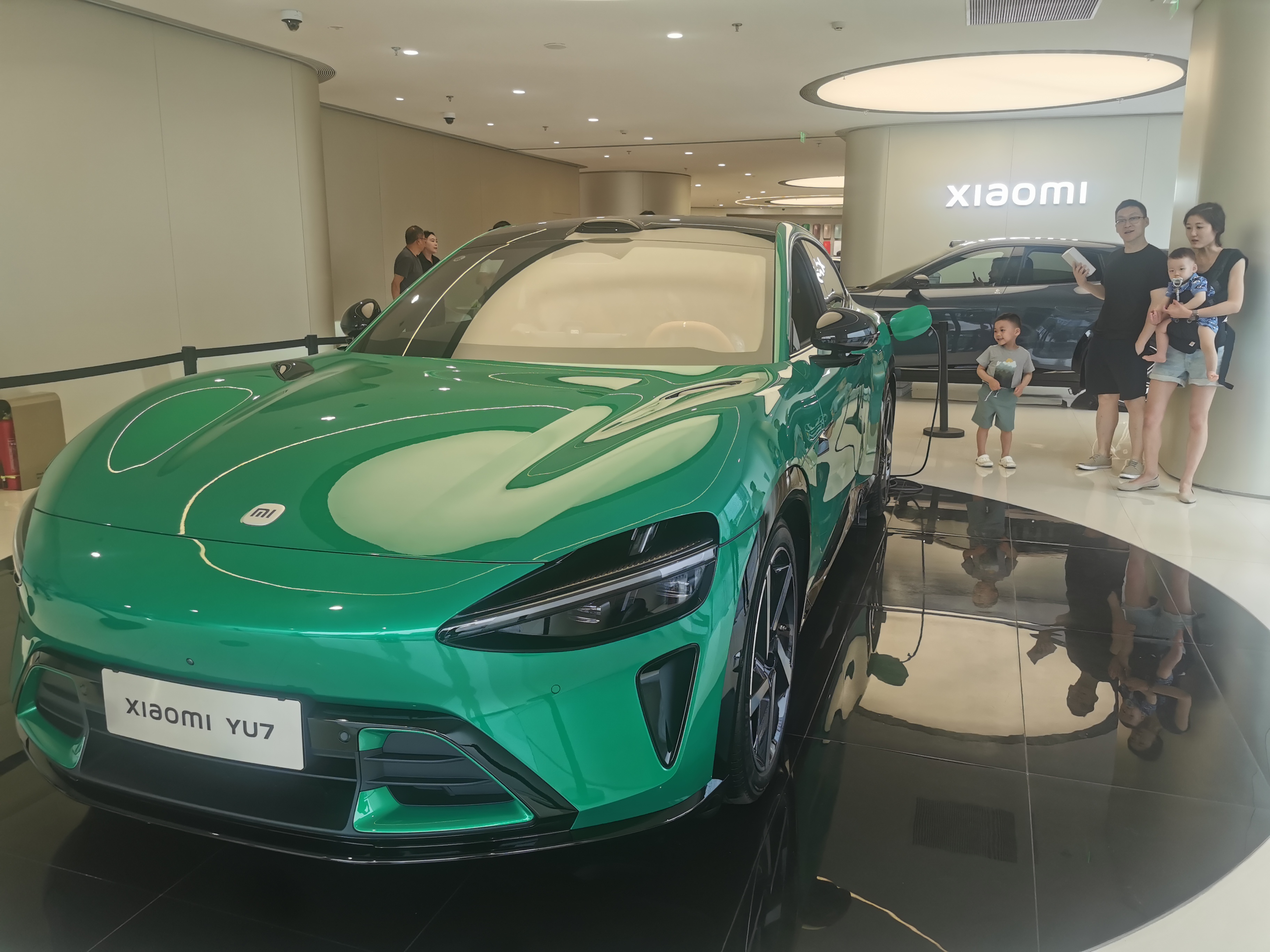 6月26日晚上,小米首款SUV小米YU7正式发布。6月27日上午,在北京东方广场的小米之家旗舰店,YU7展车开放展示,不少顾客慕名前来体验。