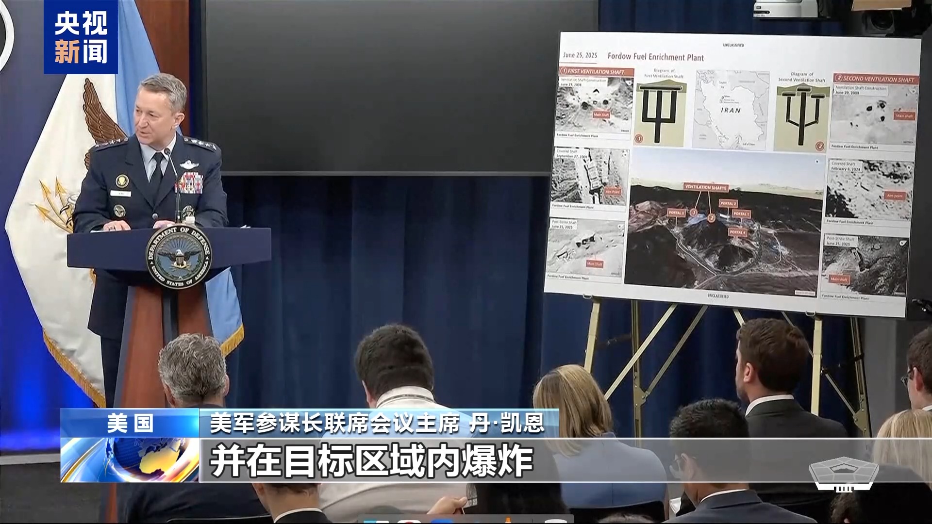 凯恩表示,在对伊朗核设施发起攻击的实际任务中,炸弹瞄准的是通风井,而伊朗方面为了防备美军袭击,已用混凝土封住了这些通风井。