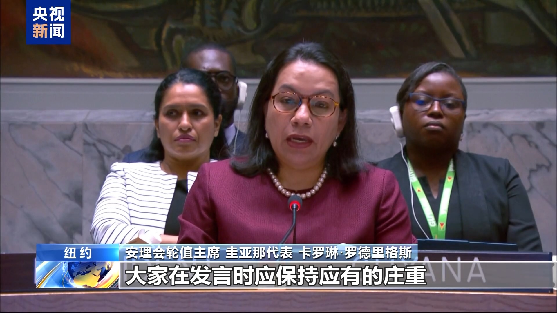 安理会轮值主席 圭亚那代表 卡罗琳·罗德里格斯:在我宣布发言之前,想提醒所有发言者,这是一次联合国安理会的正式会议,大家在发言时应保持应有的庄重并避免人身攻击。