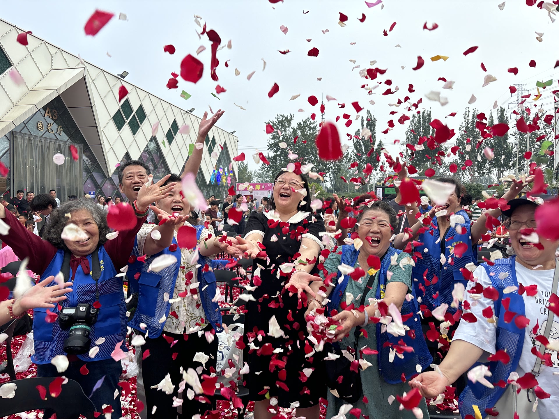 晚上6点20分左右,在校园歌手演唱的《一路生花》歌声中,花瓣雨来袭!一捧捧花瓣被抛向天空,欢声笑语此起彼伏,人们用镜头记录下这烂漫的时刻。