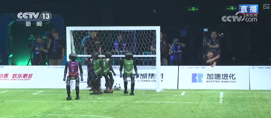 这次比赛,所有参赛队选用的都是同一款机器人,在续航、体能、行动力基本一样的情况下,比的到底是什么?说到底就是机器人的脑力大比拼,机器人在场上的表现,取决于它们的人类队友开发的AI。赛前,每个参赛队都在统一的技术平台上设计开发了自己的AI程序,谁的算法更快,策略制定更精巧,机器人在场上的决策时间就会更短、配合度就更高。这是一场真正的人工智能算力、算法的比拼,完全由AI自主解决高度动态环境中机器人控制问题。机器人在场上迈出的每一小步,是背后的技术团队在AI开发上的无数次打磨和优化,更是我国具身人工智能产业的向前一步。