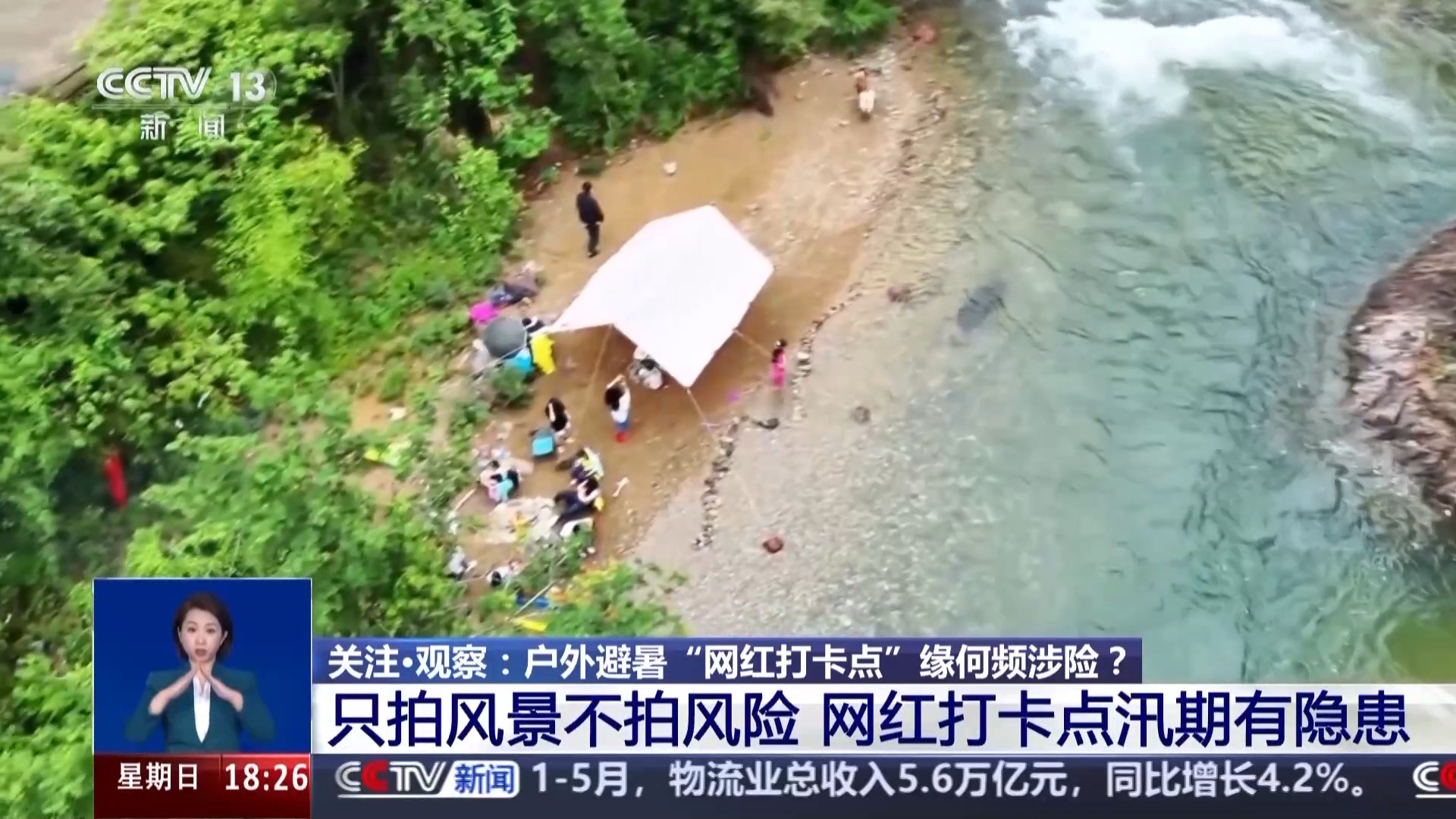 浙江宁波市消防救援支队余盈:游客在水边玩耍,对上游山洪的下降往往是听不清、看不见的。提醒大家汛期不要在河道边或者是干涸的河床上搭建营地,应该尽量选择地势高、地面平坦坚固、背风的地方扎营。