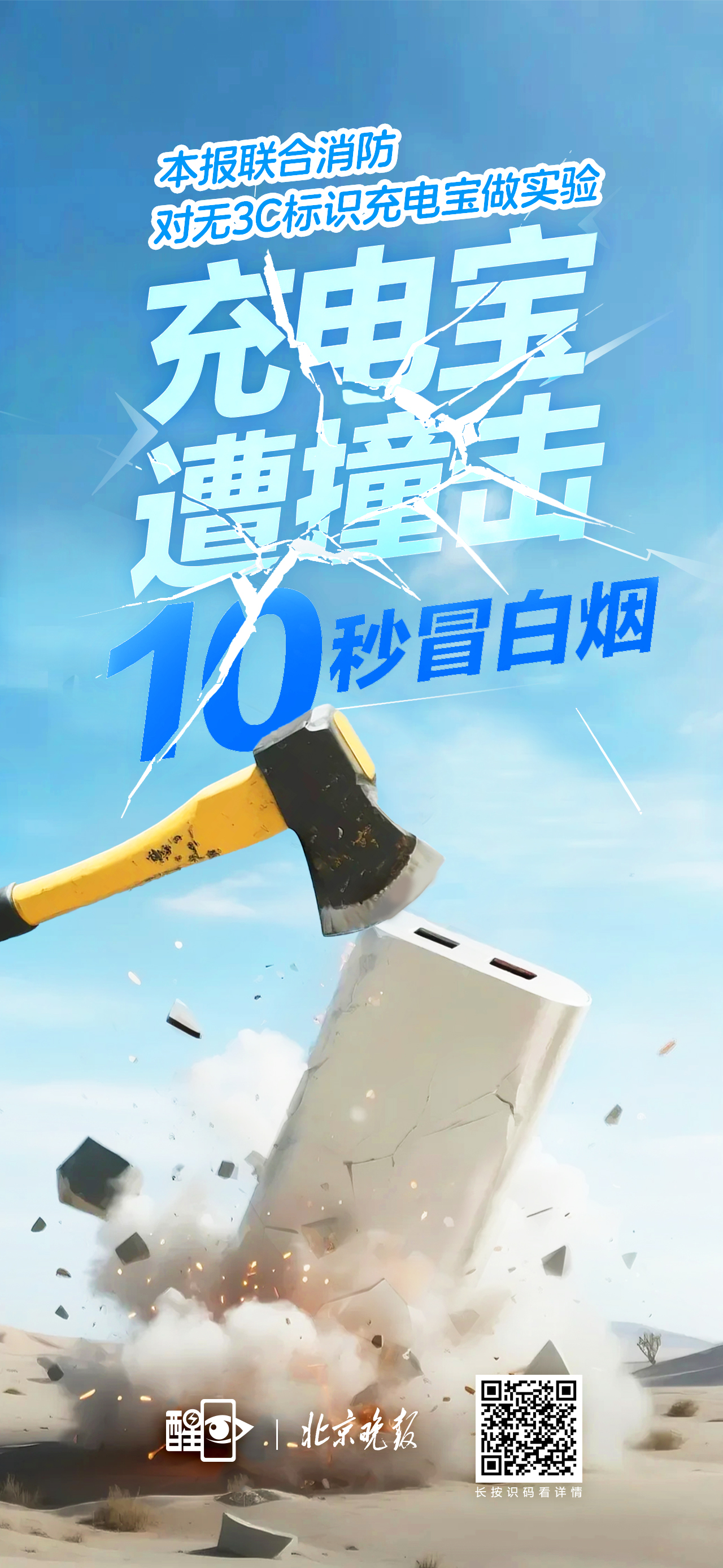 近期,充电宝安全问题引发公众关注。充电宝遭遇撞击和燃烧时会发生哪些变化?市面上哪种类型的充电宝电池“火气”更大?如何更有效地扑灭起火的充电宝?7月1日,北京晚报联合大兴区消防救援支队做了一组实验,浓烟、刺鼻气味、炸飞10米远的电池碎片等实验现象显示,充电宝一旦“发火”将十分危险。(长按图片扫码看详情)