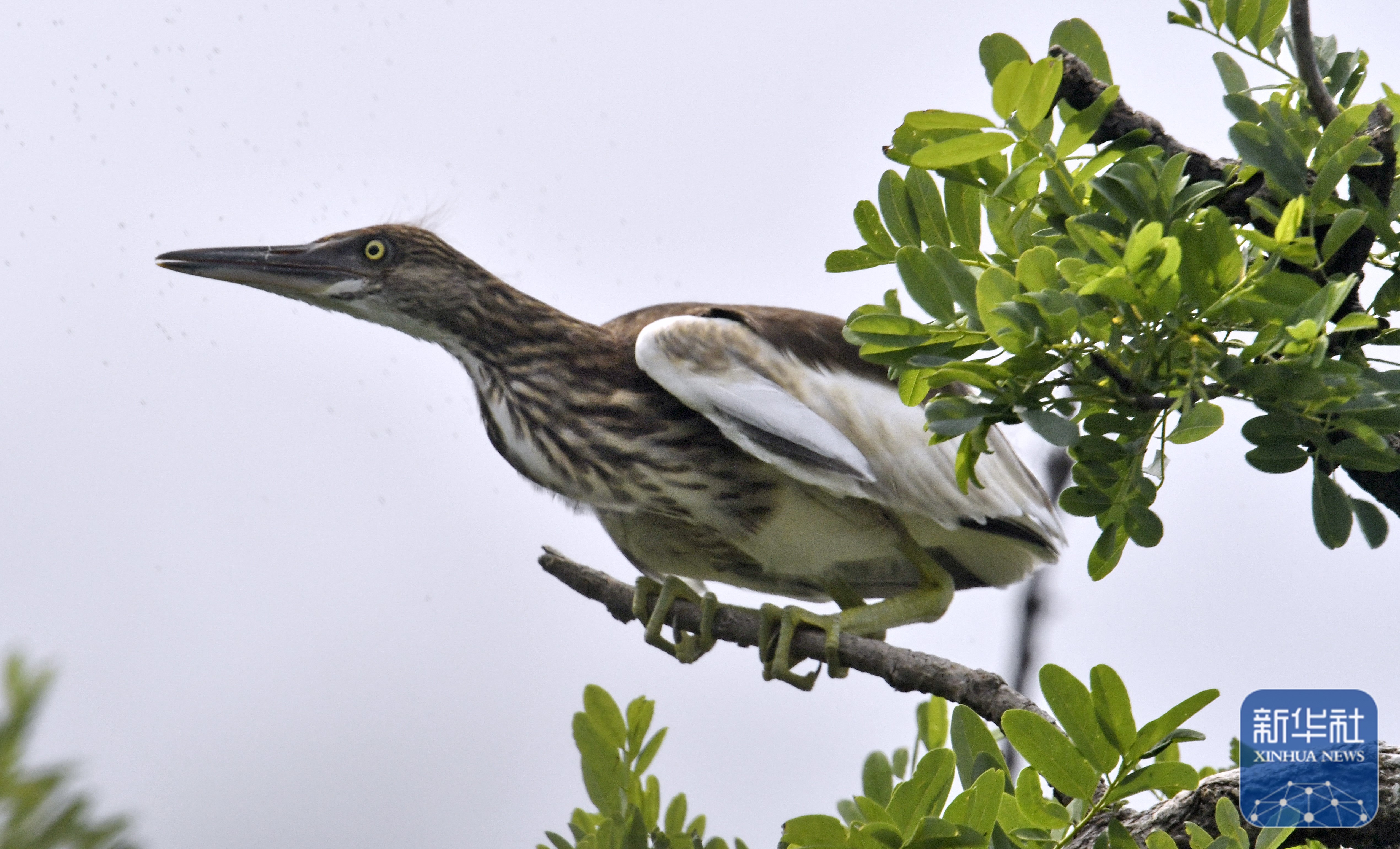 ↑ 7月2日,一只池鹭栖息在密云水库鸟岛上。