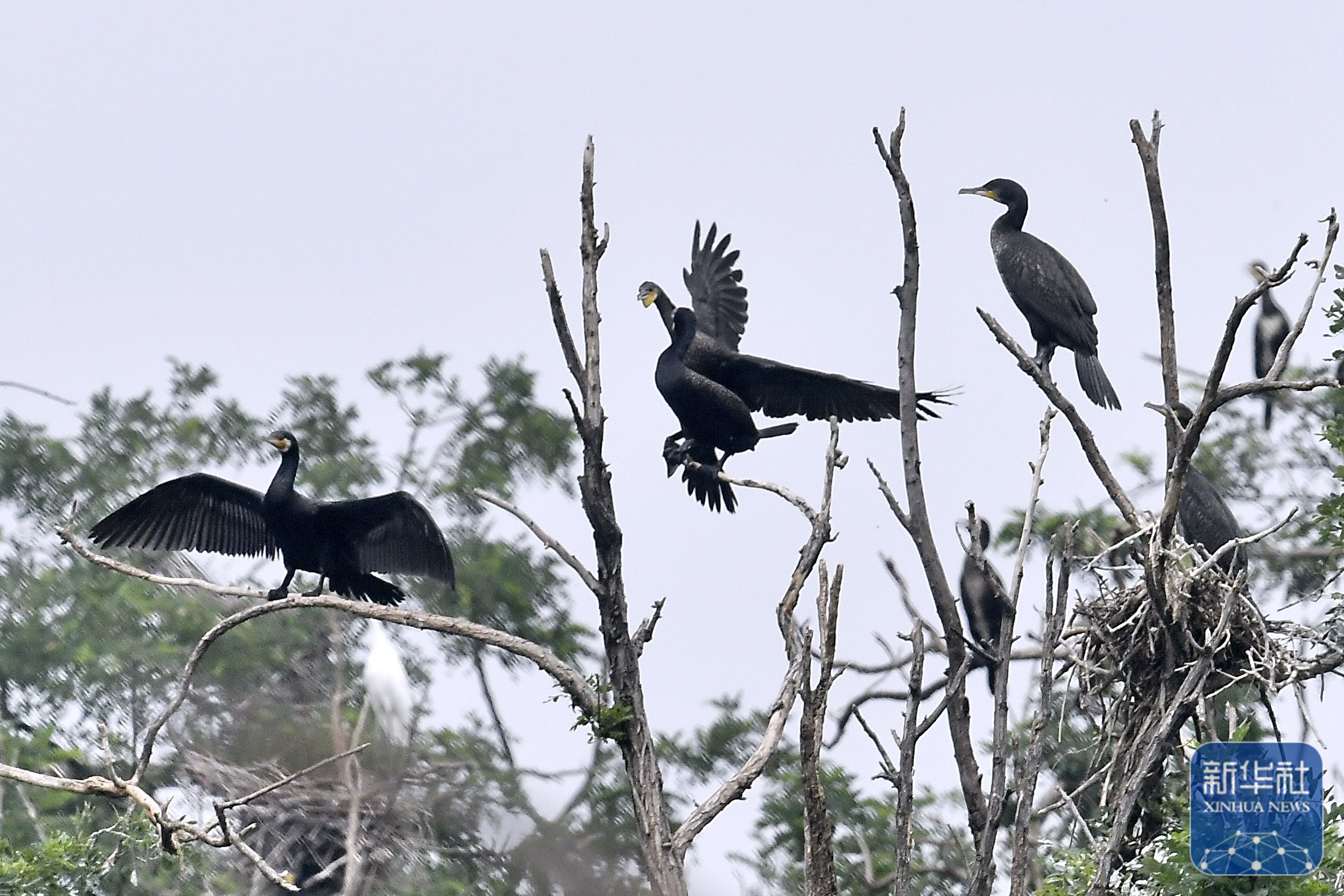 近日,北京市密云水库鸟岛的幼鸟陆续离巢飞翔。据密云水库管理处水生态所管护员观测,鸟岛上的苍鹭、鸬鹚、白鹭等种群繁殖数量稳定,孵化的幼鸟在成鸟精心哺育下,近日陆续进行试飞活动。
