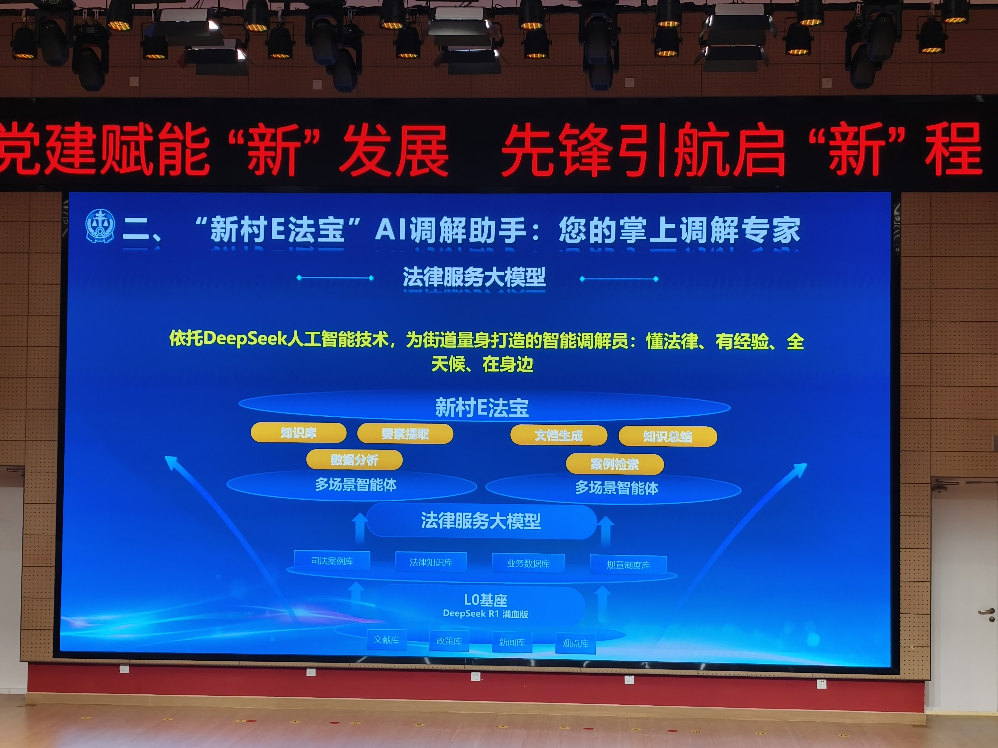 “新村E法宝”AI调解助手作为学院式街区优秀共建案例进行了现场展示。国家最高法信息中心相关负责人介绍,通过党建协调委员会了解到基层矛盾化解的现实需求与挑战后,该中心依托全国司法大数据和DeepSeek等人工智能技术,为街道量身打造了这个懂法律、有经验、全天候、在身边的智能调解员。
