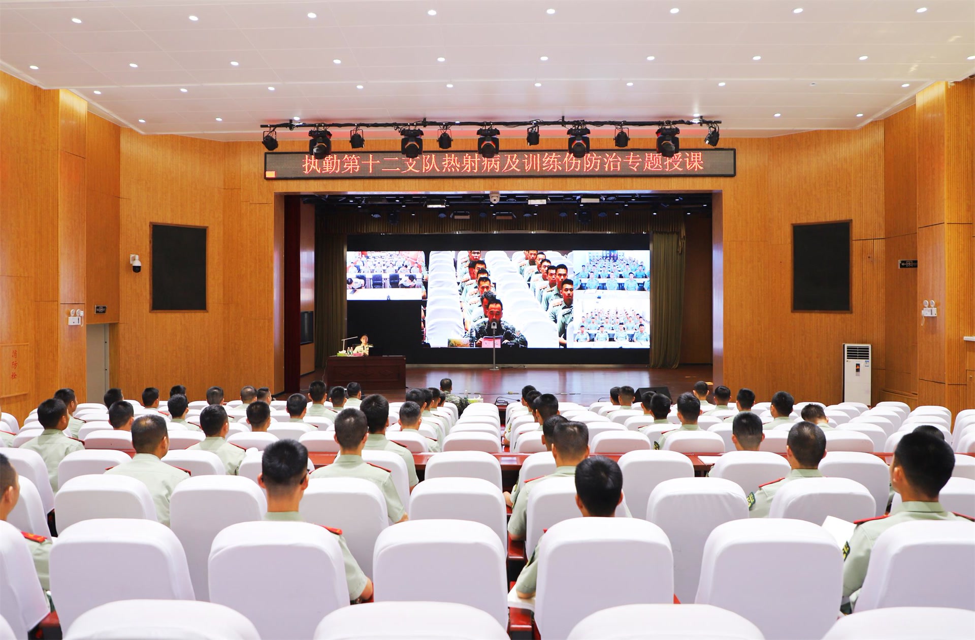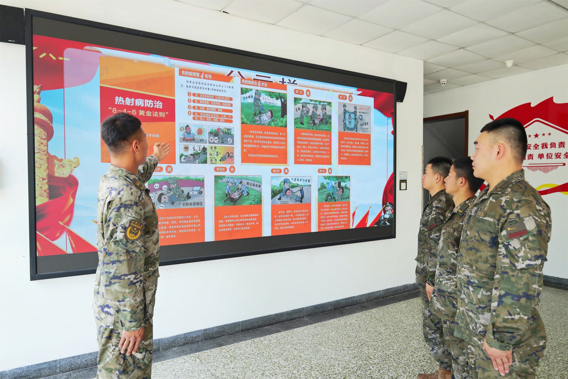 “热射病是一种严重的中暑症状,通常发生在高温高湿的环境中。它会导致身体核心温度迅速升高,对大脑、心脏、肾脏等器官造成危害,甚至危及生命。”学习室内,授课人结合多年工作经验和驻地气候特点,为官兵带来一场图文并茂的热射病救治知识课。