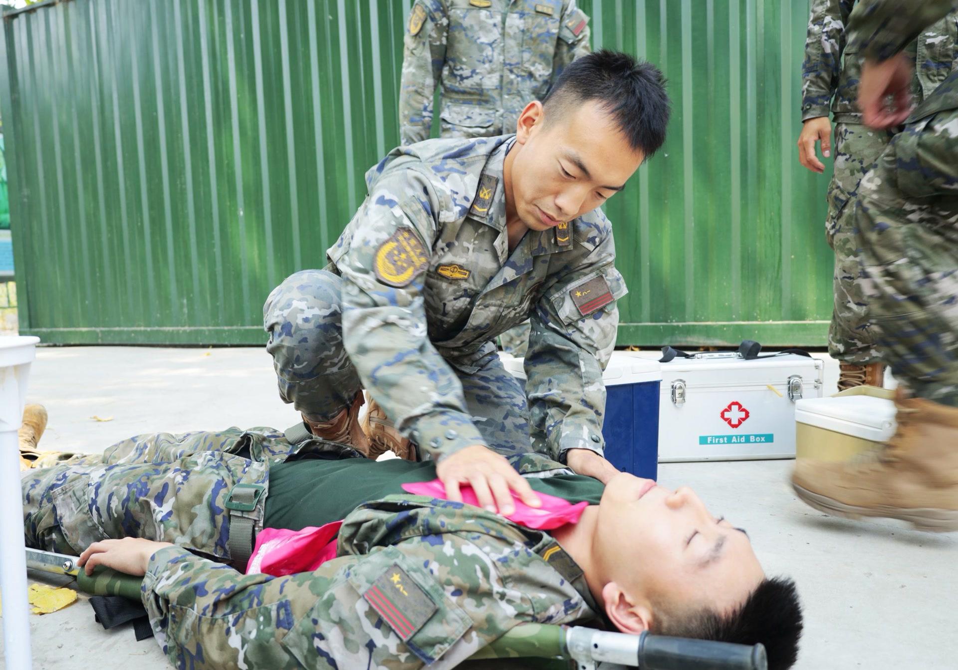 “一名战士在进行体能训练时,突然晕倒,全身发热,急需救治。”“立即将患者转移到阴凉通风的地方,快速利用热射病担架抬至热射病降温池进行物理降温”……近日,武警北京总队执勤第十二支队结合卫生防病工作实际和驻地气温变化特点,做好高温季节官兵防暑降温工作,预防热射病发生,不断提升训练安全质效,守护官兵身体健康。