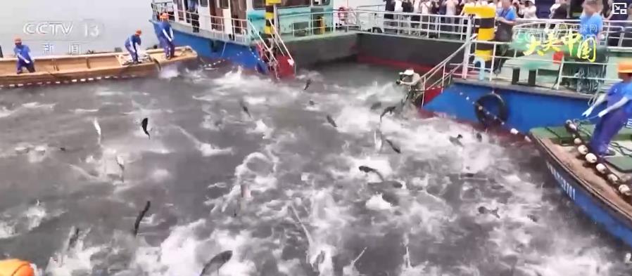 在淳安千岛湖,盛夏的“调色盘”将星罗棋布的岛屿染成了葱茏的绿色。澄澈的湖面上,一曲水上“交响乐”正在上演:数十位捕捞队队员合力收拢巨网,万尾鲜鱼银鳞跃动,在日光中泼洒出丰收的金色华章,这是属于千岛湖的独特“夏收”,鱼跃人欢的场面吸引了大批游客前来观赏和体验。