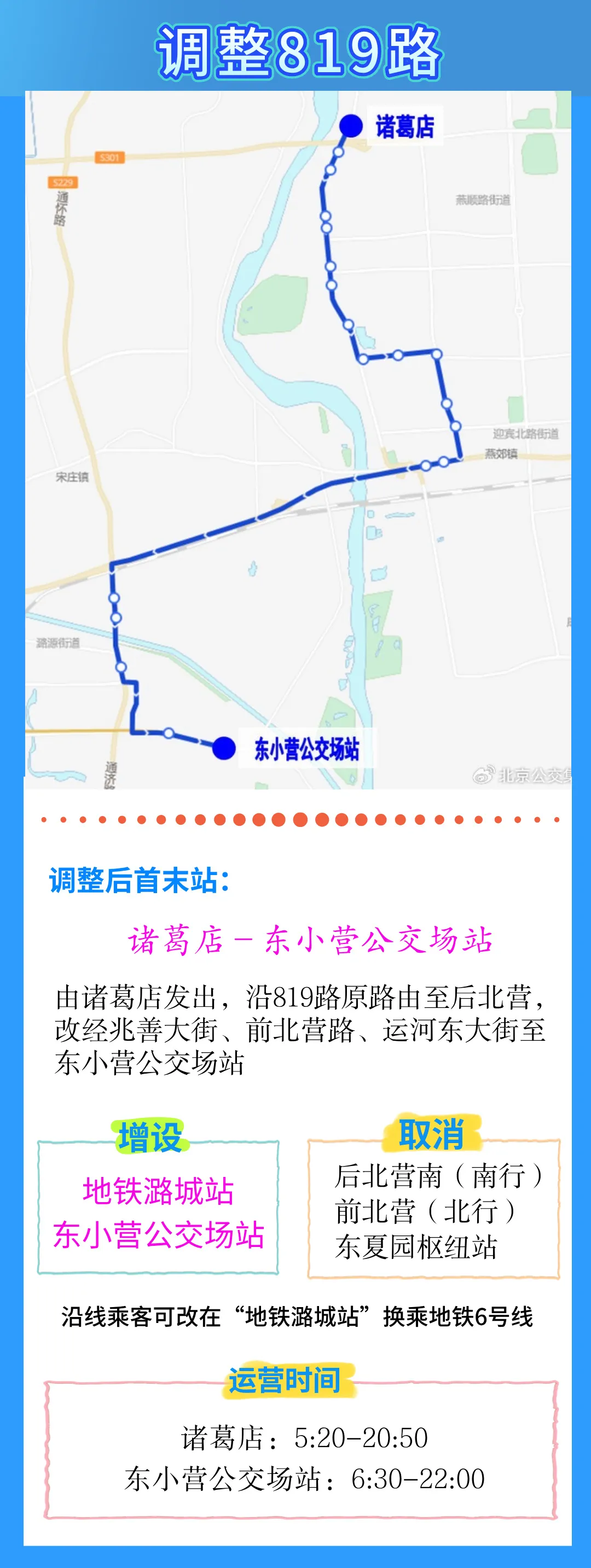 北京公交集团将于明天(7月9日)起,调整106路、458路、819路、822路,撤销夜21路,其中涉及通州的线路有819路、822路。