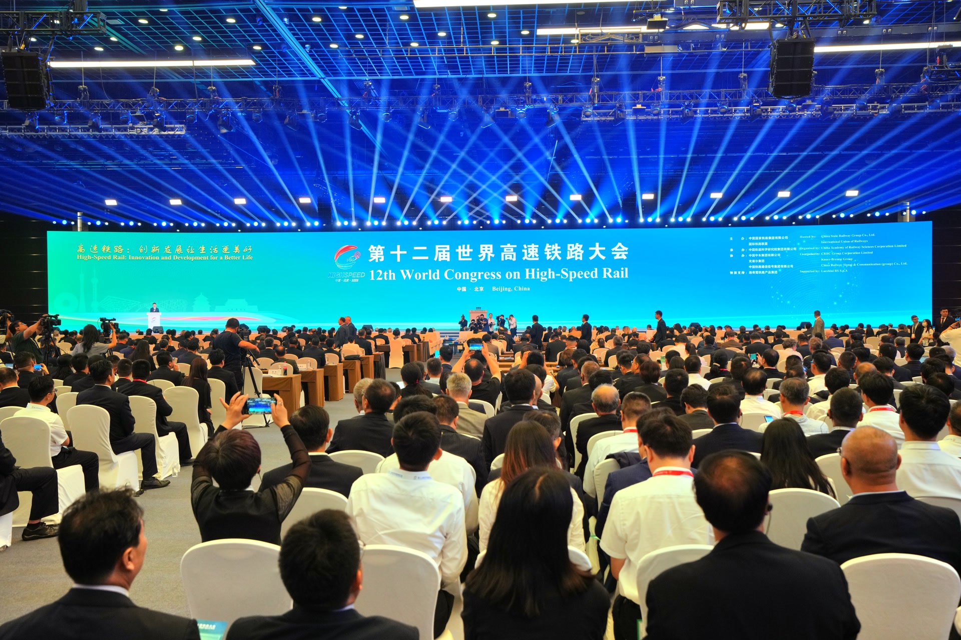 7月8日上午,第十二届世界高速铁路大会在国家会议中心开幕,大会主题为“高速铁路:创新发展让生活更美好” ,来自全球60多个国家、地区和国际组织的政府官员、驻华使节、企业高管、专家学者及国内参会代表共计2000余人出席。第十七届中国国际现代化铁路技术装备展览会也同步举办。