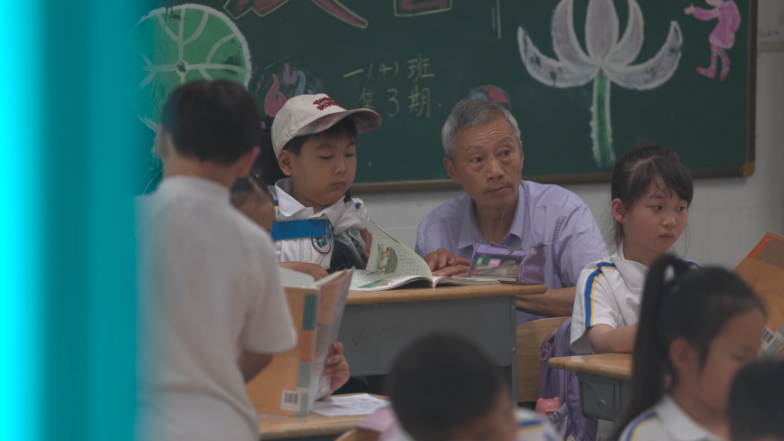 药物和康复锻炼让病情发展变慢,景颜有了更多愿望。他渴望上学,体验校园生活。家人带他回学校参加运动会和课堂。由于身体原因,他需要外公全程陪读,帮忙移动手臂写字,课间在改造的保安室休息恢复体力。