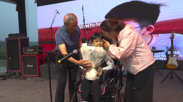 景颜受邀参加在北京举行的罕见病公益音乐节演出。风雨中,景颜颤抖却坚定地决定登台。身着西装,挺直脖颈,他略带紧张的歌声穿透雷雨,站在了属于自己的人生舞台上。这一刻,是无数汗水、泪水与爱的凝结。
