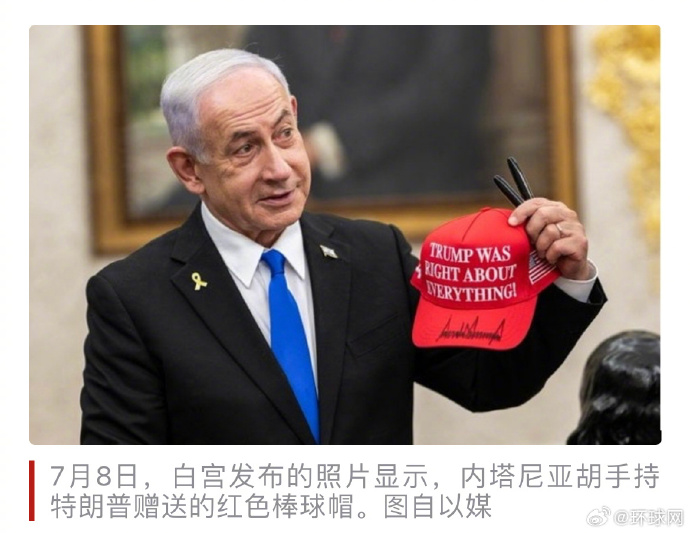 特朗普8日回赠内塔尼亚胡一顶红色棒球帽并在上面签名,帽子上印有“特朗普在所有事情上都是对的”字样。