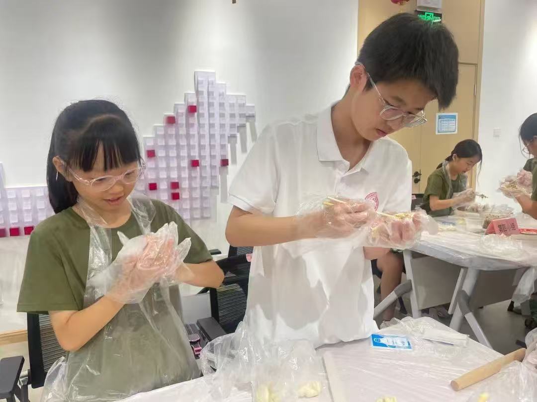 孩子们围在一起,认真聆听专业讲解,亲手体验心肺复苏按压技巧,学习防溺水知识,增加实用的自护本领;“碳中和”主题课上,科普知识不再枯燥!孩子们在游戏中了解环保理念,绿色种子悄然播撒心田;“稍息!立正!”社区退役军人陈德浩口令洪亮,孩子们精神抖擞,一板一眼地学习基本队列动作,体验纪律与团队精神;化身“小厨神”!和面、擀皮、包馅儿……孩子们围着桌子忙得不亦乐乎,在老师鼓励下越做越起劲,成就感满满。
