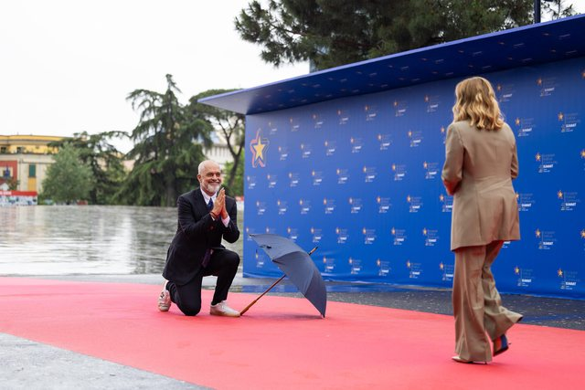 RT提到,这并非拉马第一次在梅洛尼面前单膝跪地。5月16日,欧洲政治共同体领导人会议在阿尔巴尼亚首都地拉那召开,身高2米多的拉马在红毯欢迎仪式上,同样以单膝跪地、双手合十的方式迎接梅洛尼。拉马此举当时受到部分网友质疑,认为他过于亲近,有讨好的嫌疑。