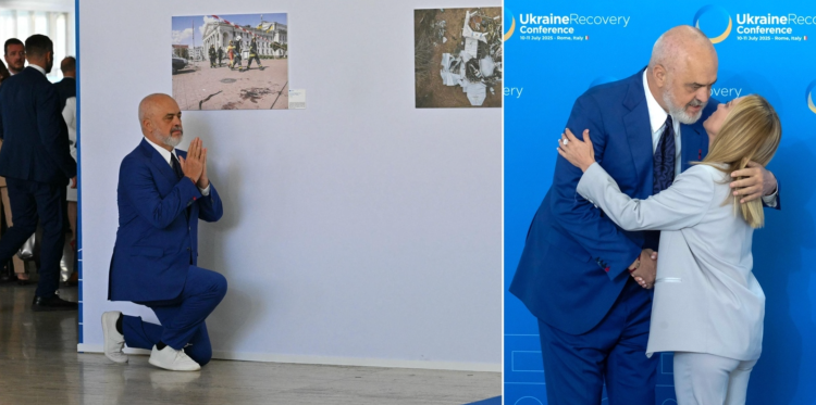 阿尔巴尼亚总理拉马再次单膝跪地,迎接意大利总理梅洛尼——当地时间10日,在意大利首都罗马举行乌克兰重建国际会议期间,这样一幕引起意大利《信使报》、“今日俄罗斯”(RT)等多家媒体关注。