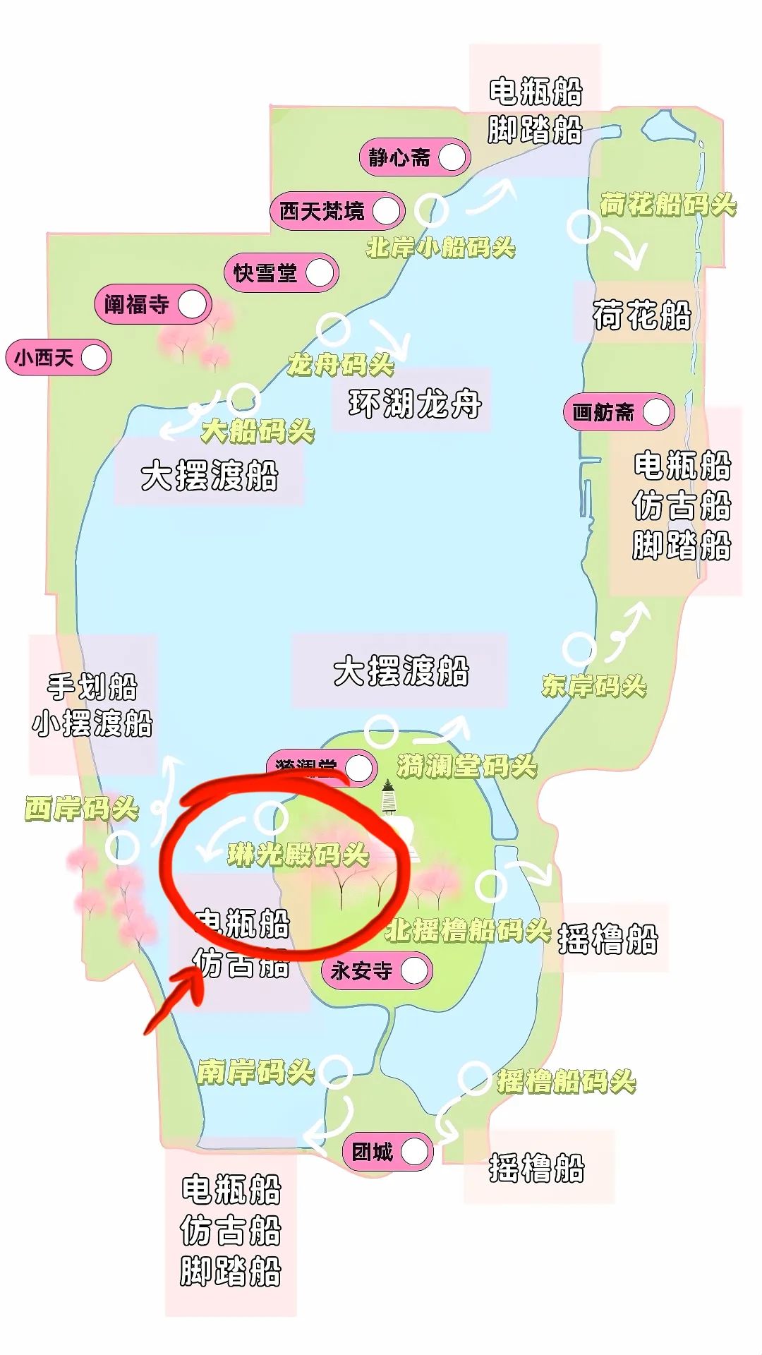 温馨提示:您可以从南门或东门进入公园,离码头比较近哟~