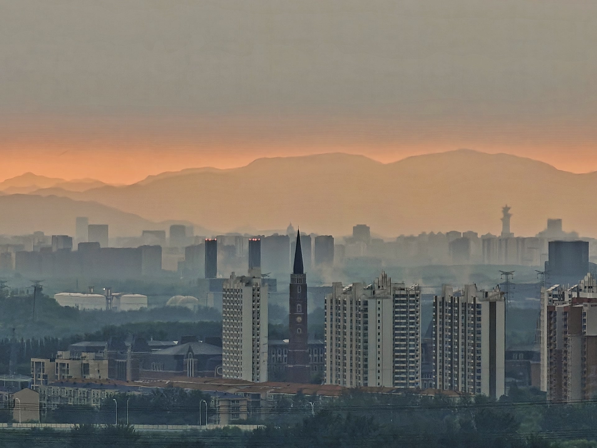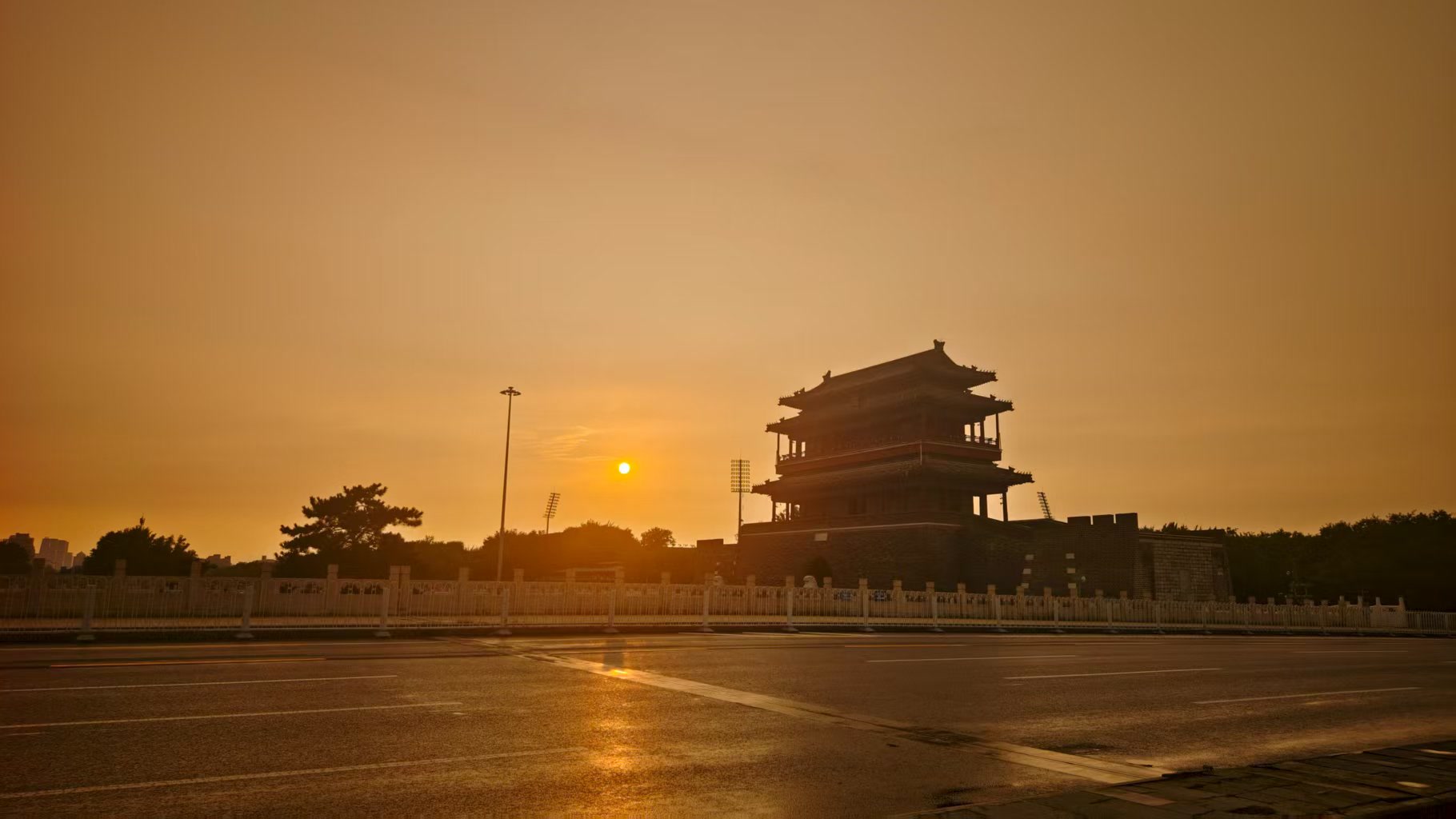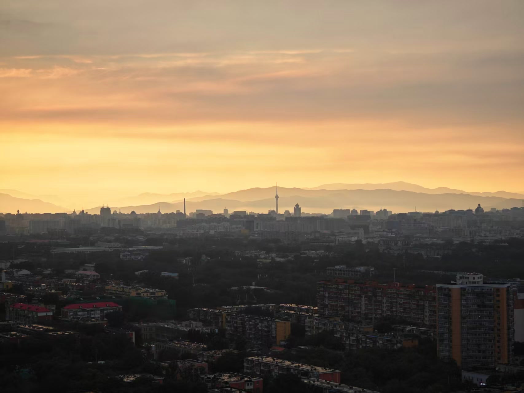 北京骤雨初歇,金色晚霞上线