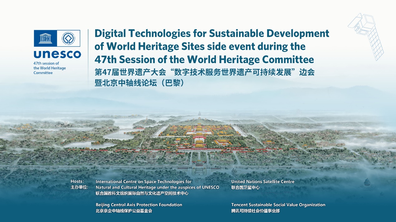 此次会议在北京市文物局指导下,由联合国教科文组织(UNESCO)国际自然与文化遗产空间技术中心(HIST)、联合国卫星中心(UNOSAT)、北京京企中轴线保护公益基金会和腾讯可持续社会价值事业部举办。