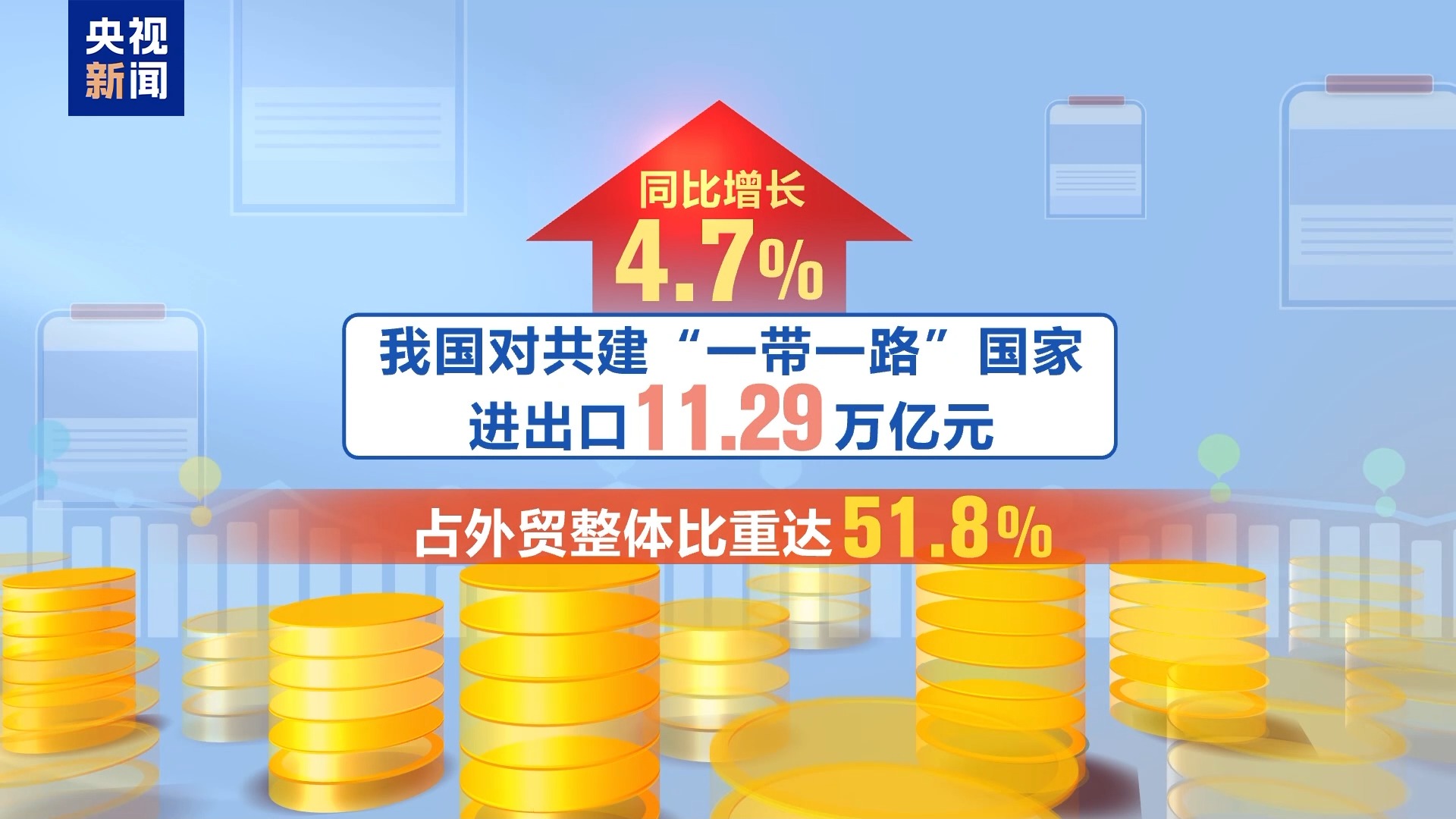 我国对共建“一带一路”国家进出口11.29万亿元,同比增长4.7%,占外贸整体比重达51.8%。