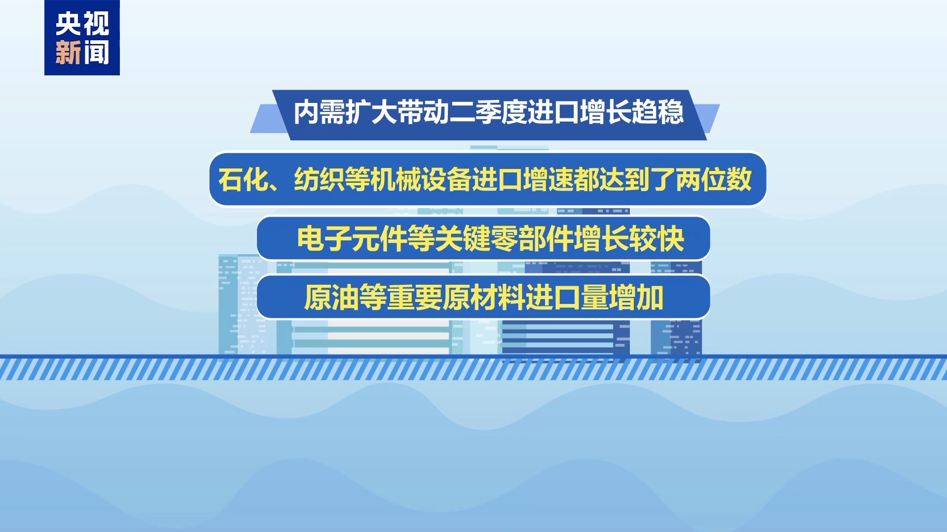 同时,内需扩大带动二季度进口增长趋稳,石化、纺织等机械设备进口增速都达到了两位数,电子元件等关键零部件增长较快,原油等重要原材料进口量增加。