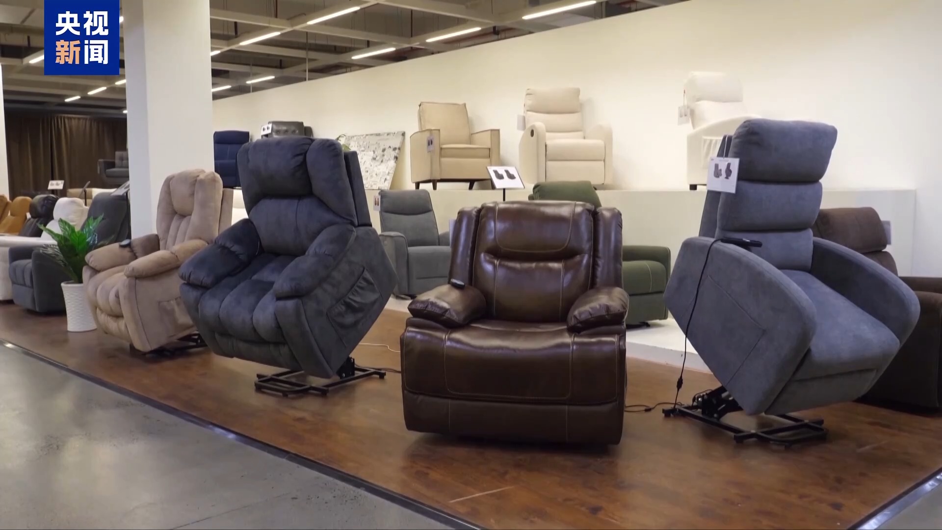外贸企业负责人 朱黄强:电机跟机械的配合,实现正常的坐姿位到躺位到起身的位置变化,帮助老人、孕妇或者其他行动不便的人实现方便站立。这个沙发在市场得到了很好的反馈。今年上半年,我们总共出口了200多个集装箱。