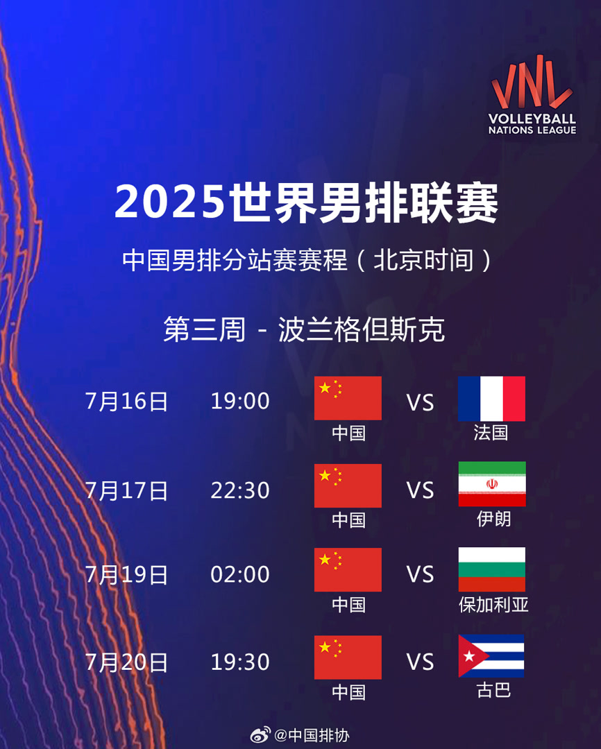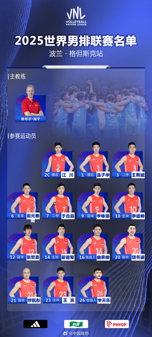 7月15日,中国男排参加世界联赛波兰格但斯克站名单公布,阵容与前一站美国芝加哥站保持一致。