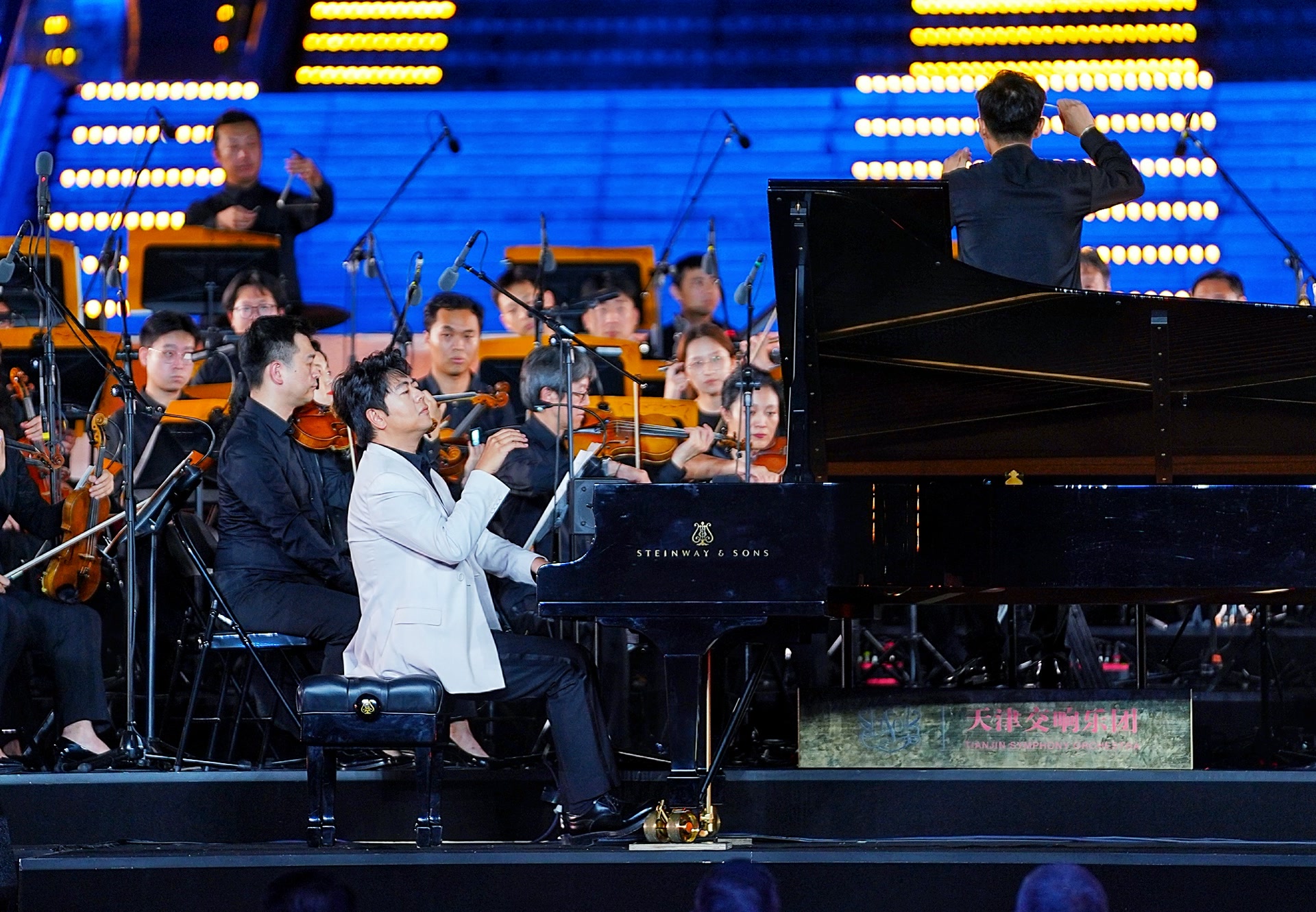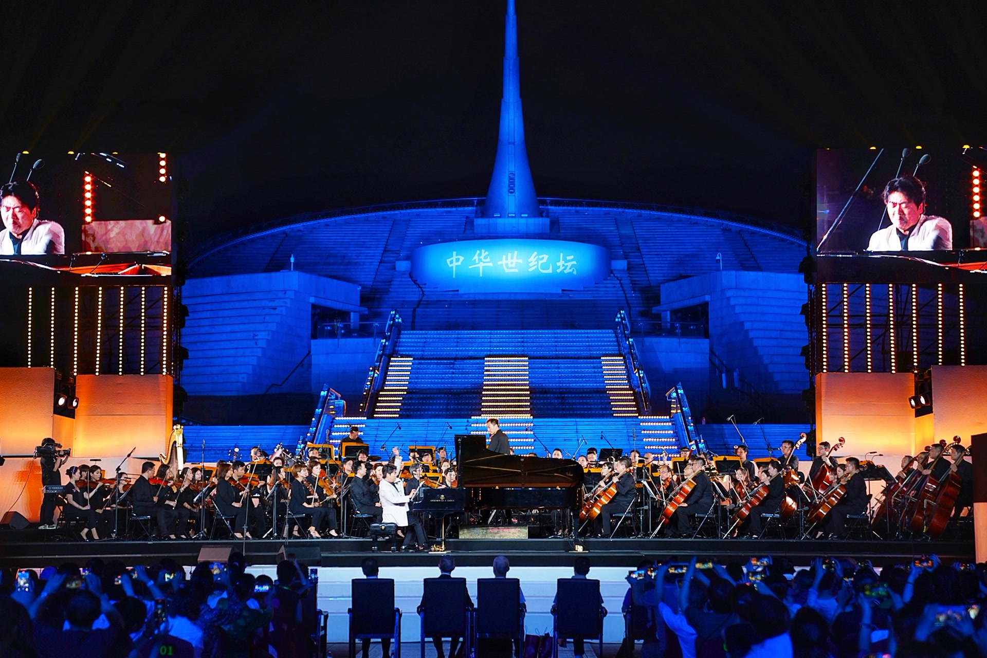 “今天是我第一次在中华世纪坛弹钢琴,我感觉到非常磅礴的力量,今年是世界反法西斯战争胜利80周年,在这个独特的时间节点弹《黄河》,希望我能把它弹得更有气势。”郎朗说,《黄河》是在世界上最有影响力的中国钢琴作品之一,更是一首凝聚中国人心的作品,“今天也有很多小朋友来这里歌唱,希望我能带个好头,延续中华民族的伟大精神。”