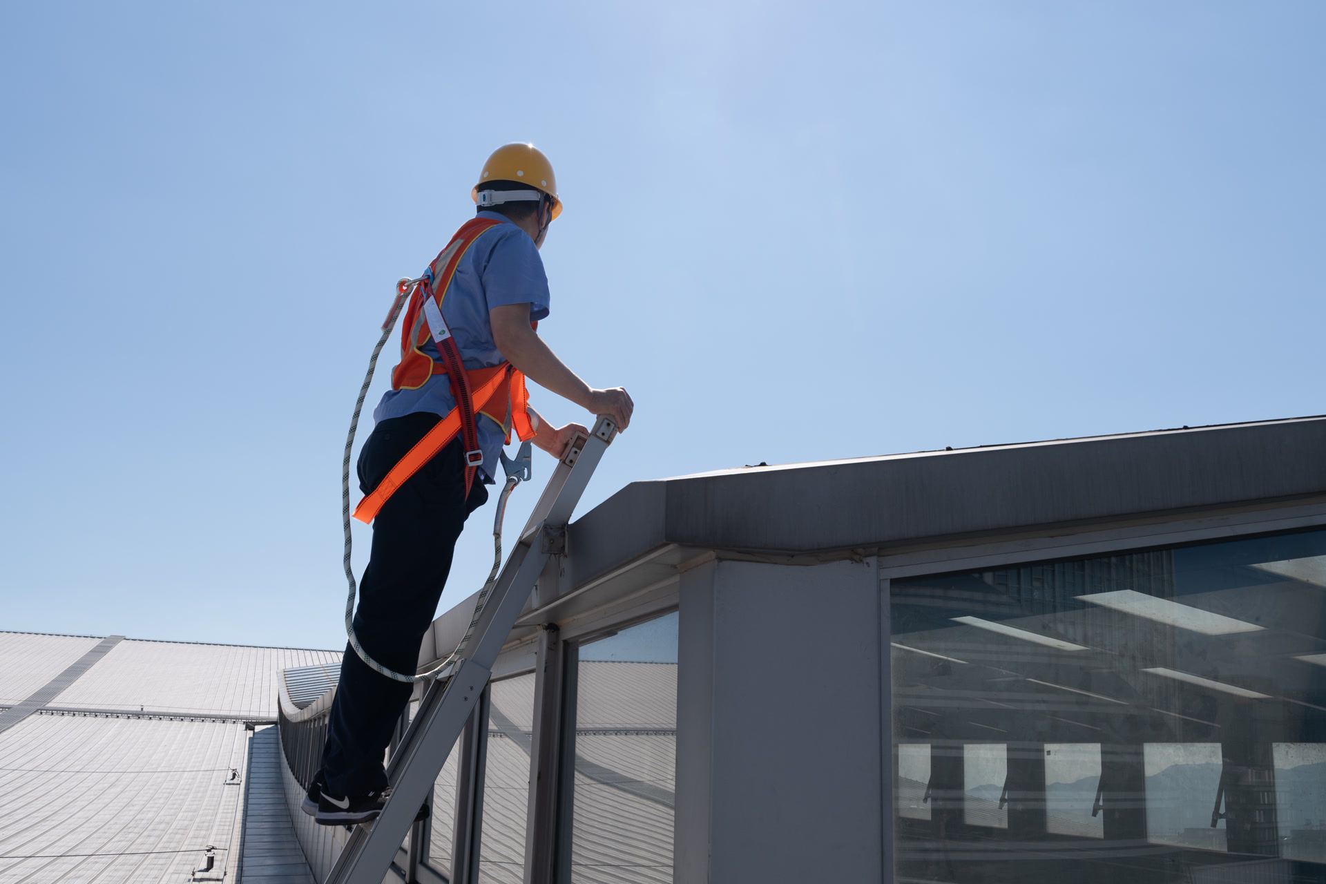 有一处排水沟需要在房顶的边缘作业。杨晋贵将安全带拴在一旁的钢索上,仔细查看排水沟里的杂物。“汛期,更要保证排水沟里没有淤泥杂物,保证排水通畅。”说着,他从排水沟掏出些许杂物。