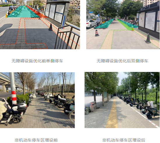 大兴区德茂站则在符合技术标准的前提下挪移盲道,既增加停车空间,又修复无障碍设施,破解了非机动车占压盲道的问题。