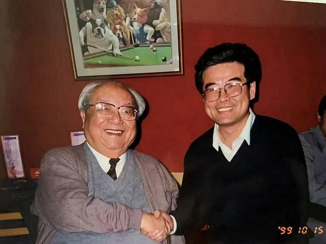 费孝通先生(左)和本文作者1999年10月15日合影于北京三联书店